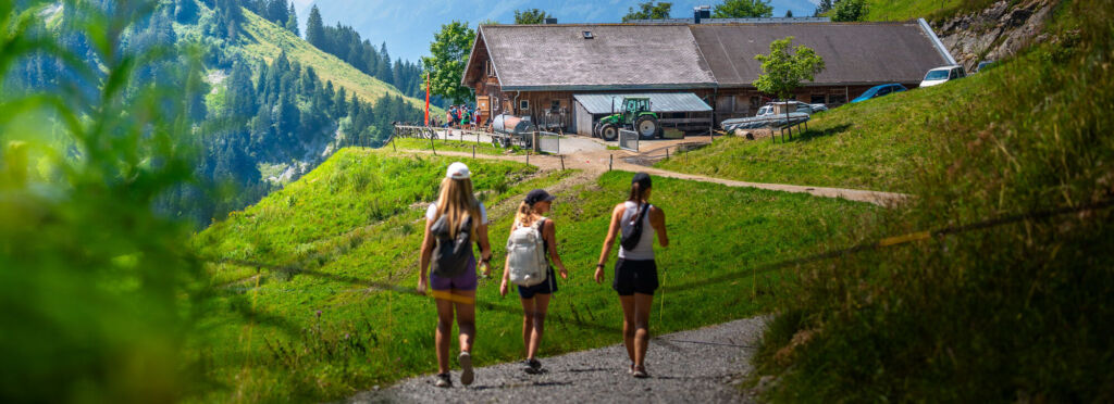 > Tipp für Frühaufsteher:innen: Starten Sie gleich mit dem Aufstieg auf die Alpe Gsohl (Diese Route kann auch entgegengesetzt gestartet werden)