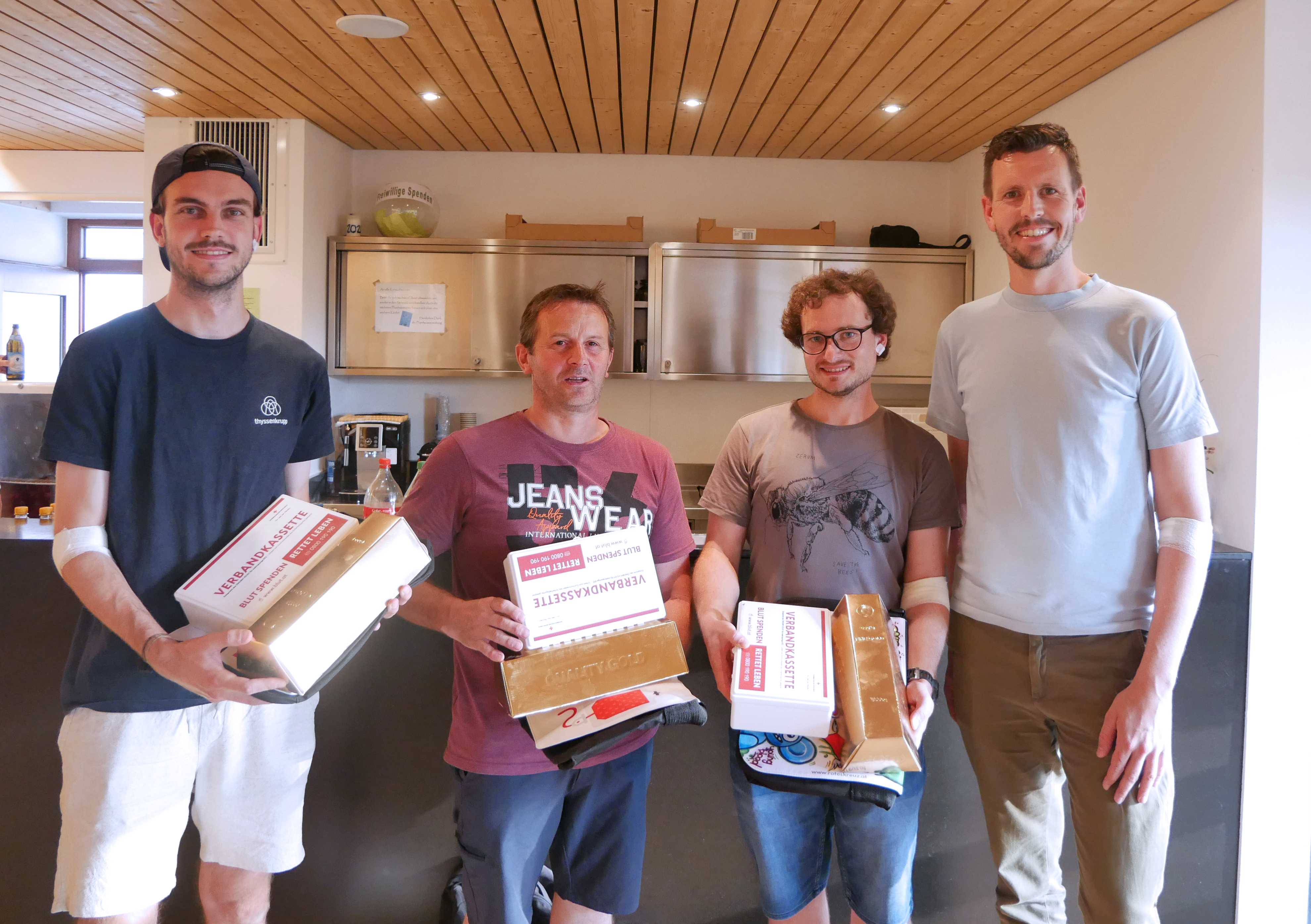 Dabei konnten 250 Blutspendebeutel gefüllt werden. 32 Personen mussten leider abgewiesen werden, also gesamt 282 spendewillige Personen! Medizinisch betreut werden mussten diesmal durch die warmen Temperaturen 27 Spender, welche leichte Kreislaufprobleme hatten. Die Blutbank Feldkirch mit ihrem 12-köpfigen Team und zwei Ärzten begleitete den Ansturm der Bevölkerung in souveräner Manier, ebenso das Team der Wirtschaft unter Ehrenkommandant Norbert Rücker und 13 Mitgliedern der Rotkreuz-Abteilung, welche die Spender wiederum mit einer deftigen Jause mit Schnitzelsemmel, Wienerle oder Käsesemmel sowie einem Gratisgetränk versorgten.