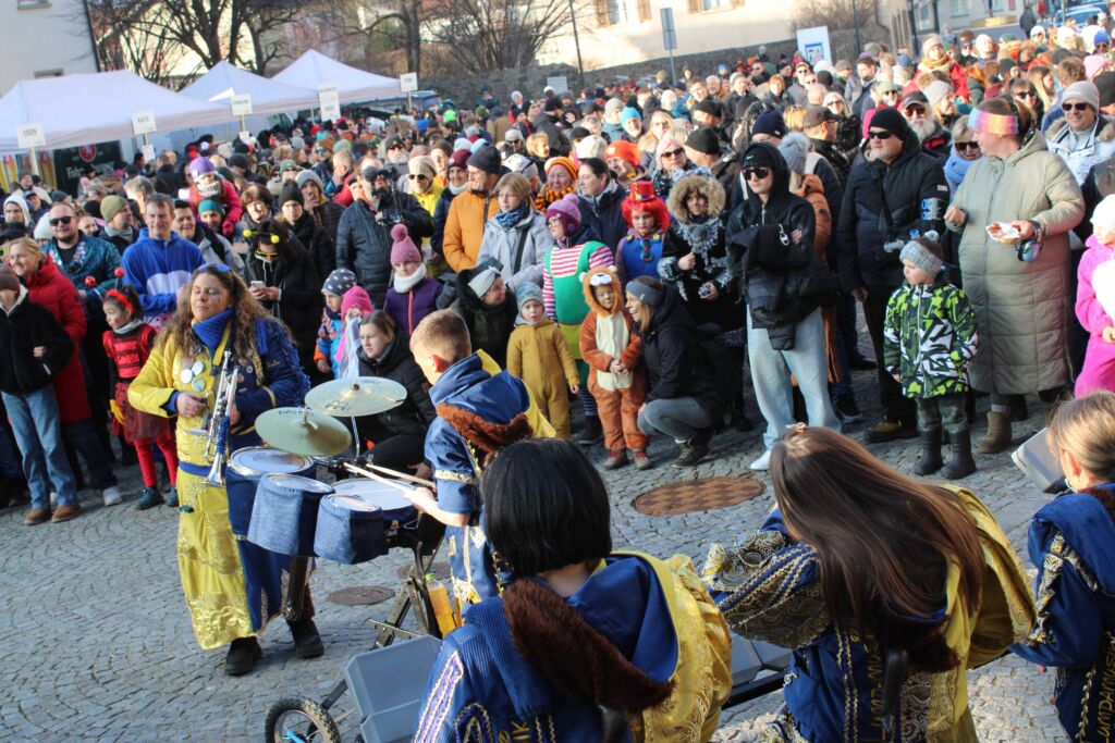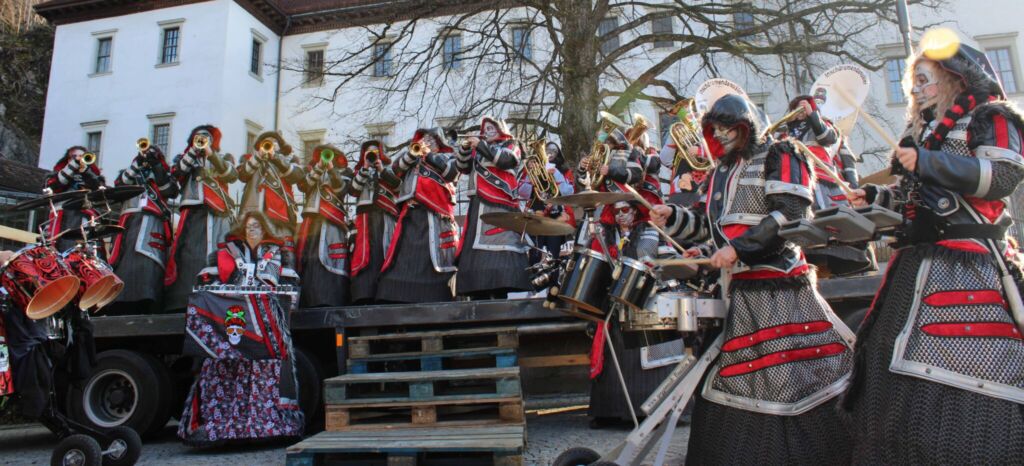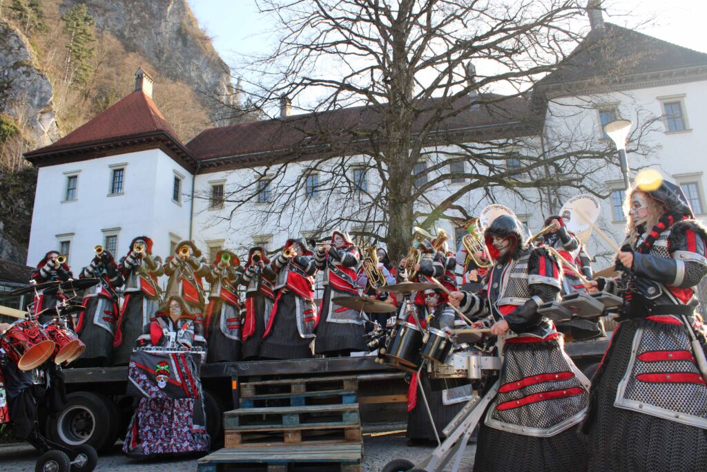 Der Tag begann bei strahlendem Sonnenschein auf dem Kirchplatz St. Karl mit einem besonderen Narrengottesdienst, der musikalisch von der Guggenband „Frumptarn“, der Guggenmusik „Crescendos“ und dem Fanfarenzug Dornbirn gestaltet wurde. Die festlichen Klänge und die fantasievollen Kostüme der Musiker schufen eine eindrucksvolle Kulisse, die den Kirchplatz in ein buntes Spektakel verwandelte. Der Gottesdienst verband auf einzigartige Weise musikalische Tradition mit dem närrischen Geist des Faschings und sorgte für einen würdigen Auftakt.