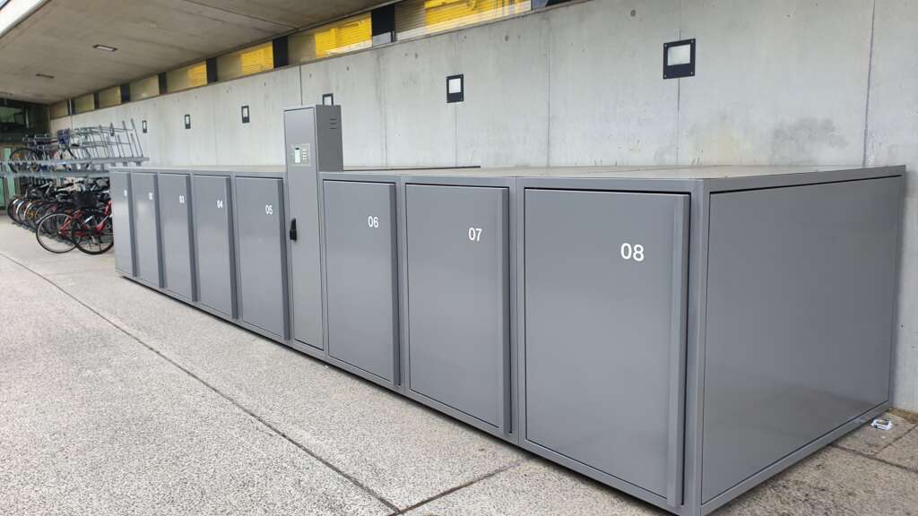 Beim überdachten Fahrradstand des Bahnhofs Hohenems, Angelika-Kauffmann-Straße 5, wurden am 15. November 2021 einige Fahrradständer durch Fahrradboxen ausgetauscht.