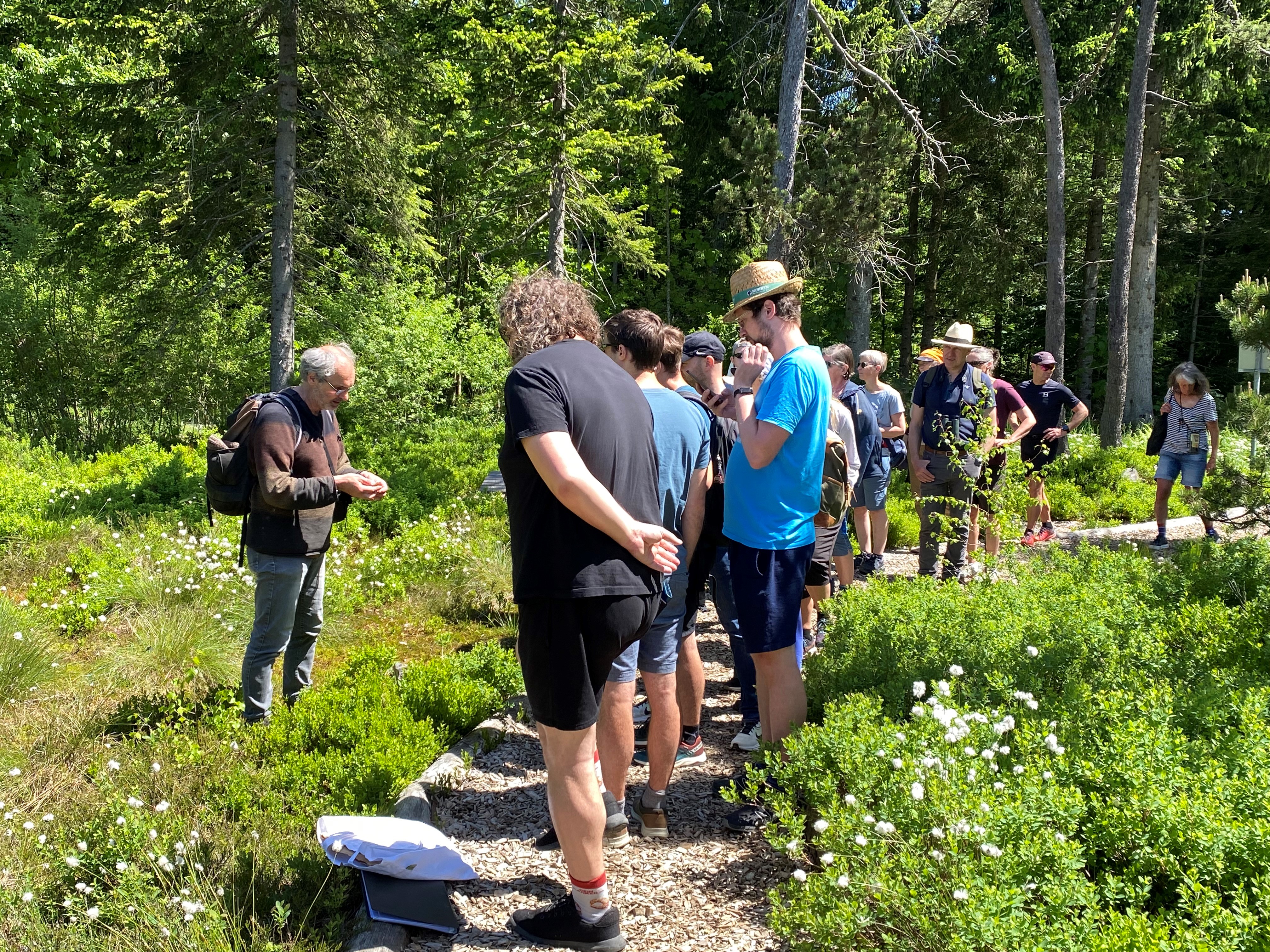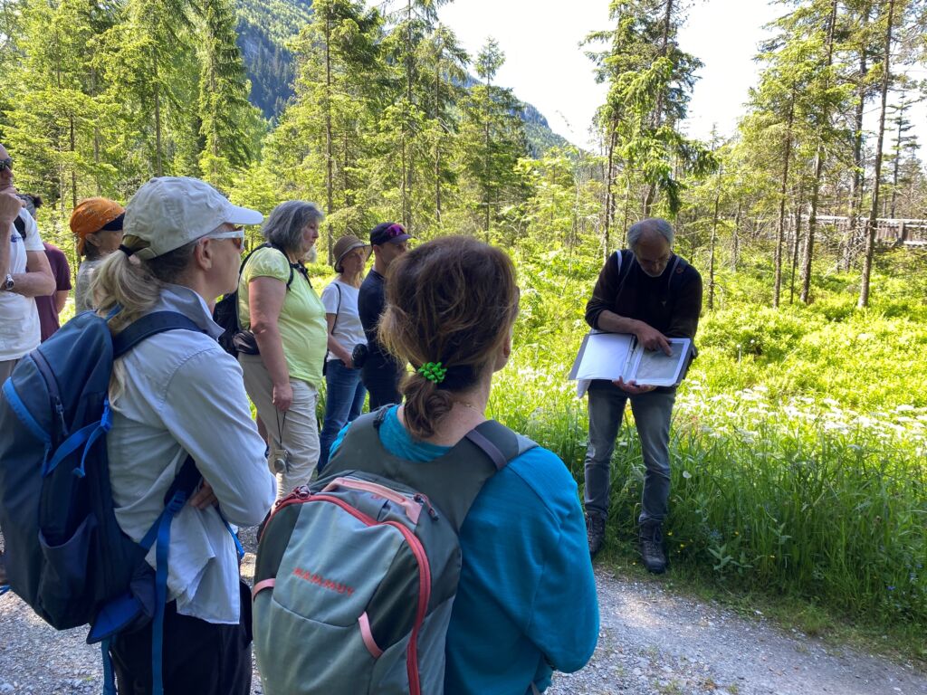 Unter der Leitung des Fachexperten Georg Amann erhielten die zahlreichen Interessierten einen spannenden Einblick in diesen einzigartigen und seltenen Lebensraum. Besonders im Fokus stand dabei die Entwicklungsgeschichte des Spirken-Hochmoors Schollaschopf, dessen erfolgreichen Renaturierung vor einigen Jahren sowie die Beobachtung von für diesen Lebensraum typischen und oft seltenen Tieren und Pflanzen.