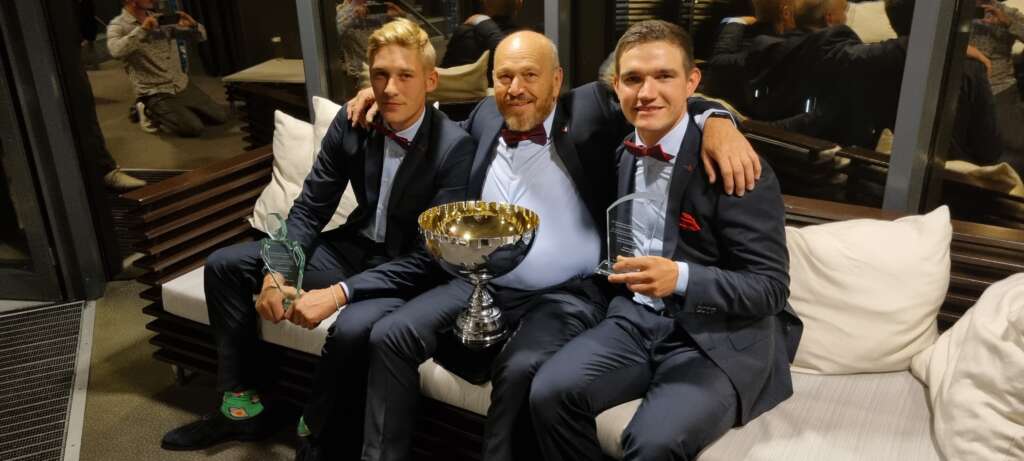 Die frischgebackenen Sieger: v. l. Fabian Mächler, Trainer und Mentor Peter Amann, Patrick Jäger Nemec