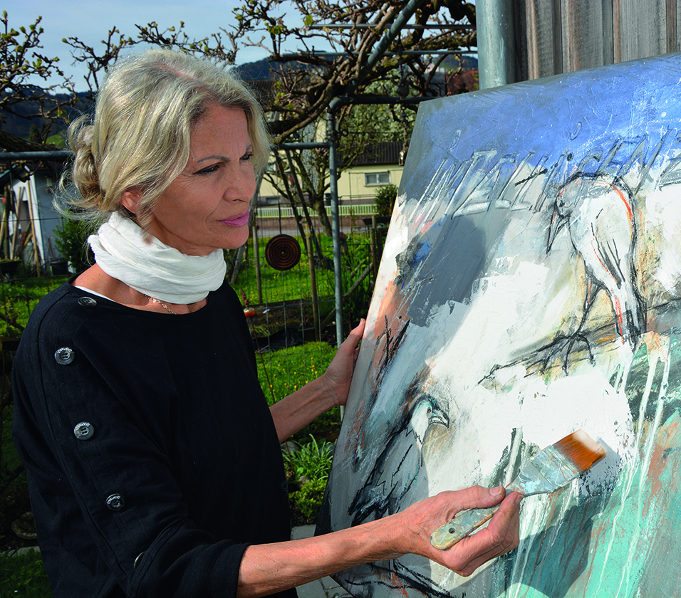 Außerdem hat sie durch ihre zahlreichen Besuche in Hohenems eine besondere Affinität zur Stadt entwickelt. Entstanden ist ein höchst interessanter Rundgang. Die Künstlerin führt ihren schon vor Jahren begonnen Zyklus von Städtebildern fort. Ihre Agenda führte sie u. a. durch die bekanntesten Städte Hollands wie Utrecht, Amsterdam, Groningen und Limburg. Dazu kommen Abhandlungen über sämtliche österreichische Landeshauptstädte. Meran, Bozen, St. Gallen, Luzern und Rheineck standen ebenfalls auf ihrem künstlerischen Reiseplan. Hohenems ist hier in sehr guter Gesellschaft. Der größte Teil der Bilder basiert auf Öl- und Acrylmalerei auf Leinwand und Papier. Aber auch die Aquarelltechnik beherrscht sie mit spielerischer Leichtigkeit.