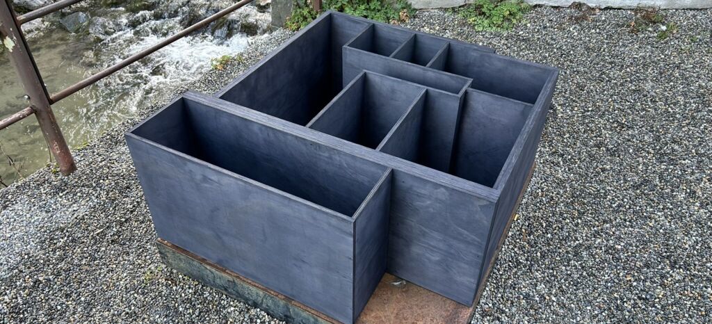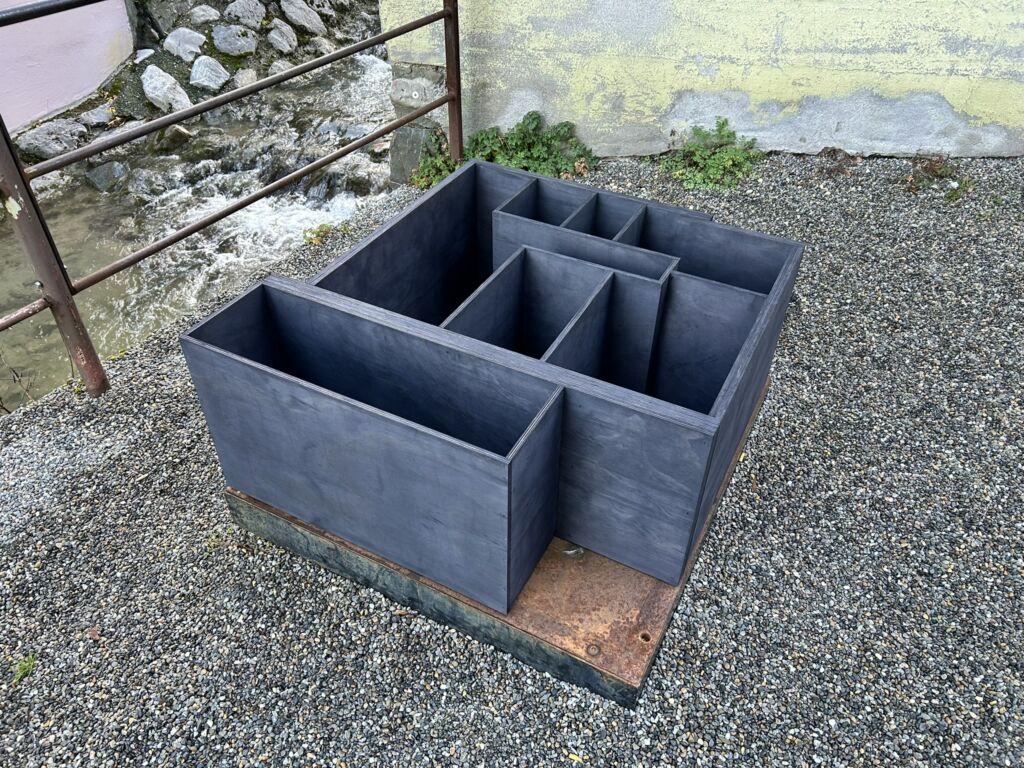 Die Kunstplattform „ein m² Kunst“ am Hohenemser Emsbach präsentiert die neue Installation von Stefan Amann. Unter dem Titel „Struktur Roseggerstraße“ stellt er den Quadratmeter als verdichtetes Sinnbild für Wohnen, Eigentum und gesellschaftliche Ordnung ins Zentrum.