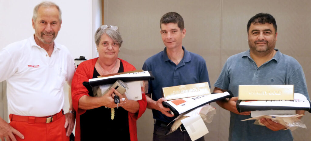 Auffallend bei dieser Blutspendeaktion in Hohenems wiederum war, dass sich neben den „Stammkunden“ auch wieder viele Jugendliche und Erstspender an der Aktion beteiligten. Stark vertreten – wie jedes Jahr – waren erneut die Mitglieder der Freiwilligen Feuerwehr, vom VfB und Handballclub sowie vom Verein ATIB. Je eine Flasche Sekt, eine Autoapotheke sowie eine Sporttasche als kleine Anerkennung überreichten Ehrenkommandant Norbert Rücker und Toni Amann als Vertreter der Hohenemser Rettungsabteilung an den 199., 200. und 201. Spender.