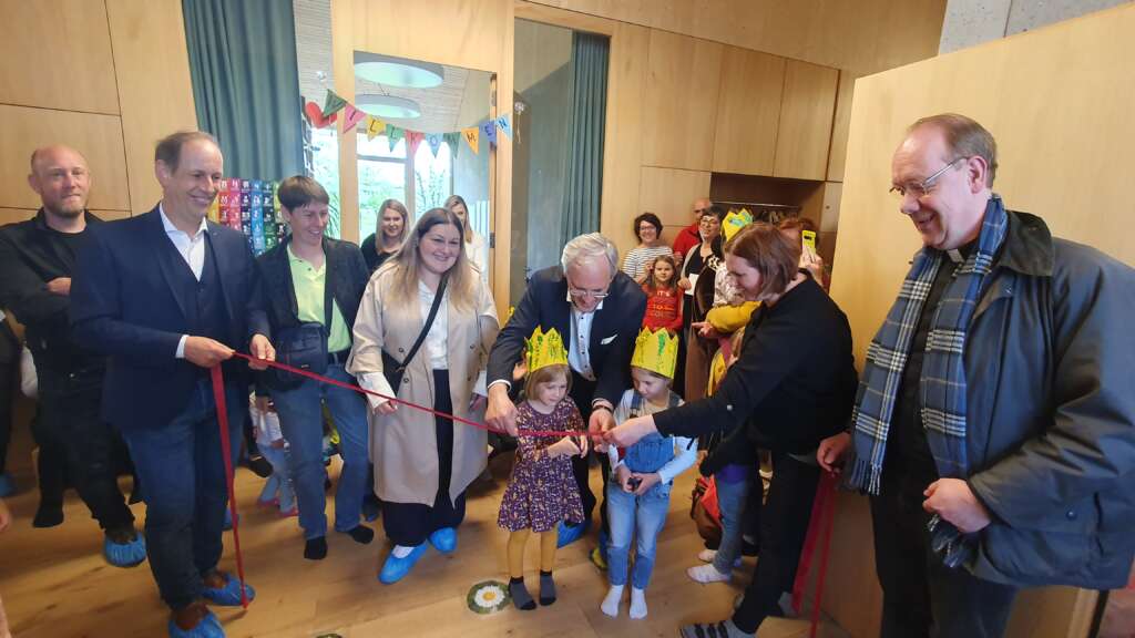 Am vergangenen Freitag, dem 12. Mai 2023, fand nun die offizielle Eröffnung statt, bei der zahlreiche Gäste, Interessierte sowie die Kinder und Eltern der Einrichtungen das neue Gebäude bewunderten.