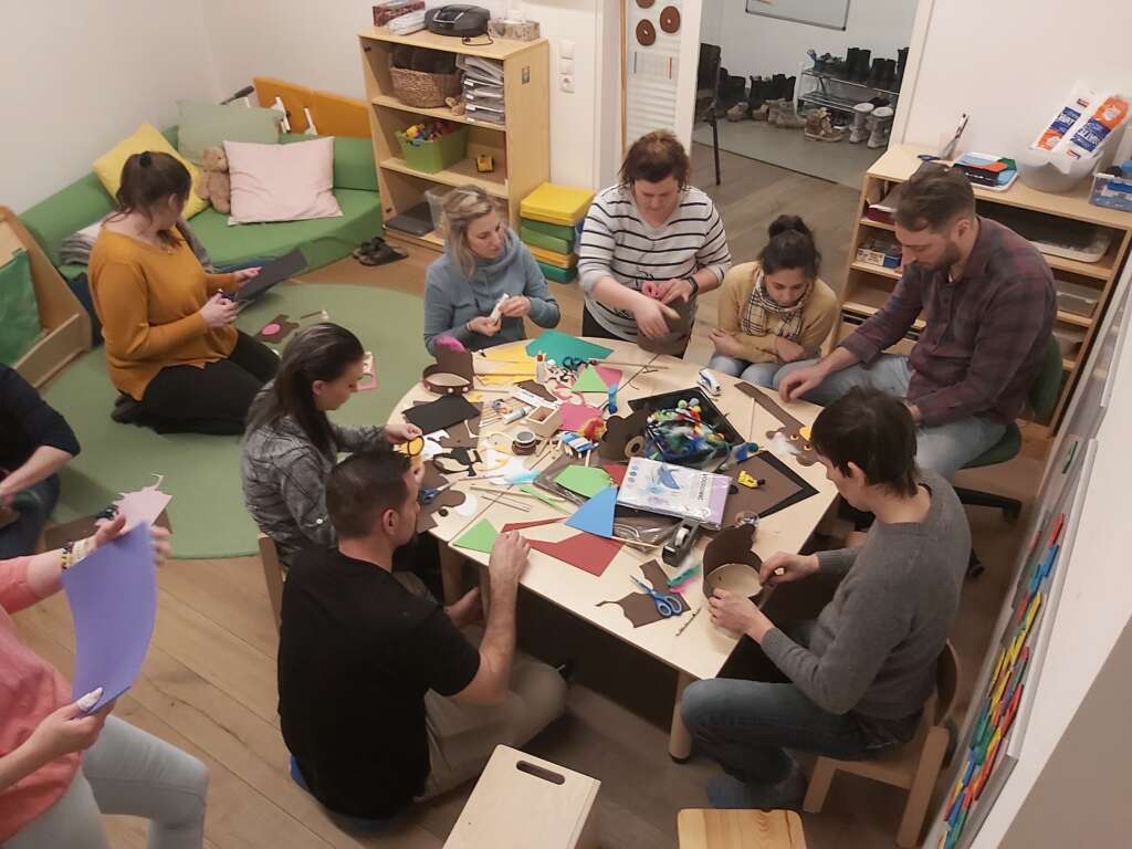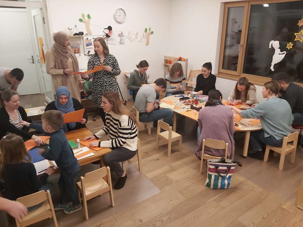 Bei gemütlichem Beisammensein wurde miteinander ein Kopfschmuck für die Kinder gefertigt, die Eltern konnten dabei sehr kreativ werden und auch die Vorlieben der Kinder wurden berücksichtigt. So entstanden am Ende des Abends ganz Individuelle „Füchse“ und „Bären“ für alle Kinder. Im Anschluss ließen alle gemeinsam den Abend bei einem ausgiebigen Buffet und interessanten Gesprächen ausklingen.