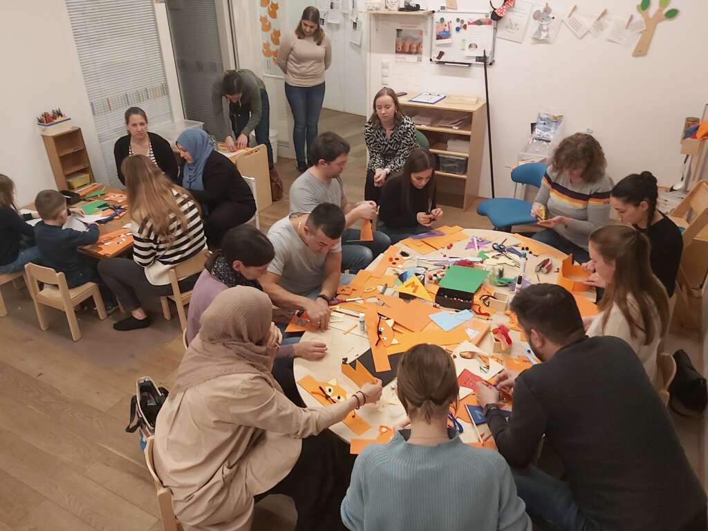 Passend zur Faschings-Zeit hat sich das Team der KIBE Harrachgasse dazu entschlossen, einen Elternhock mit Faschings-Basteln zu veranstalten. Der Abend stand ganz im Zeichen der Bildungskooperation und des gegenseitigen Austausches.