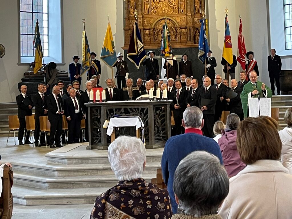 Der Einzug der neuen Fahne, begleitet von zahlreichen Abordnungen weiterer fahnentragender Vereine, war ein herausragendes Beispiel für das lebendige Vereinsleben des Gesangvereins. Die Orgelklänge „Einzug der Gäste“ aus Richard Wagners Tannhäuser, gespielt von André Vitek, verliehen dem Beginn der Feier einen besonders festlichen Charakter.