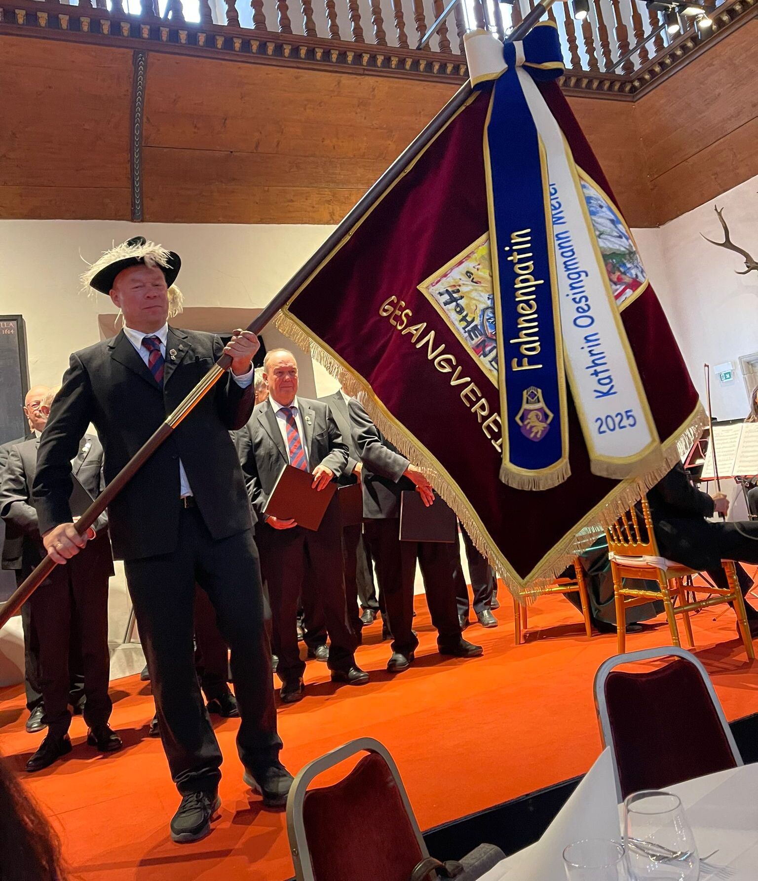 Der Höhepunkt des Festaktes war die offizielle Übergabe der Fahne an den Gesangverein, vertreten durch Obmann Alfons Mathis und Fähnrich Thomas Klien. Die Fahnenpatin unterstrich in ihren Worten die Bedeutung einer Vereinsfahne als Symbol der Zusammengehörigkeit, Solidarität und Treue zum Gesang.