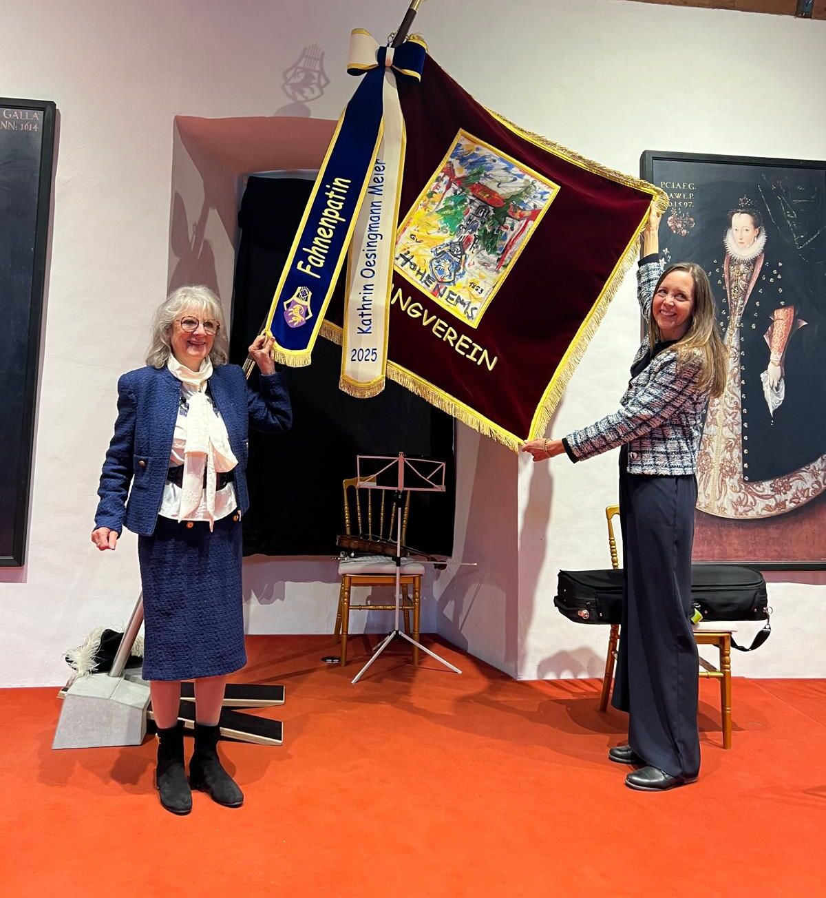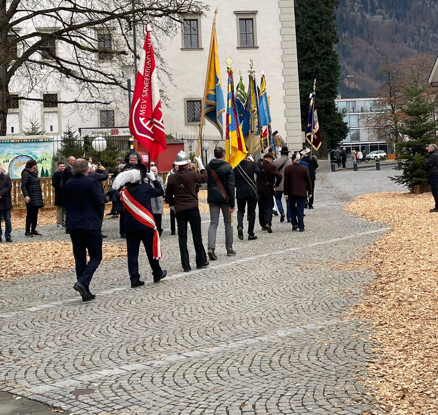 Die Festrede von Alfons Mathis widmete sich der Entscheidung zur Entstehung der neuen Fahne und würdigte besonders, dass deren Gestaltung der Hohenemser Künstlerin Margot Collini übertragen wurde, deren innovative Ideen auf fruchtbaren Boden gefallen sind. Das Ergebnis ist ein wahrhaft prachtvolles und beeindruckendes Fahnenwerk, das über Generationen hinaus Wertschätzung und Anerkennung verdienen und bleiben wird.