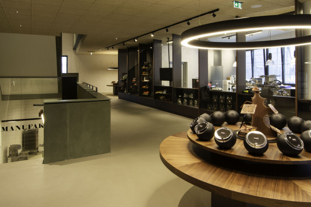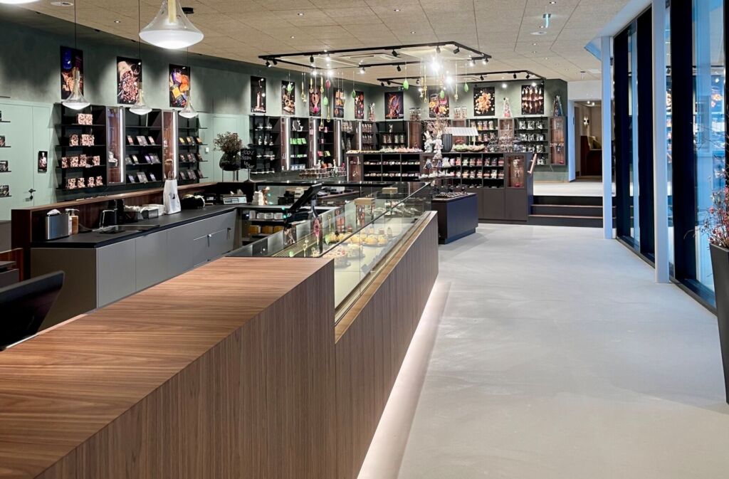 Nach dem Rundgang lädt der neu gestaltete Shop dazu ein, die Lieblingsleckereien mit nach Hause zu nehmen. Auf 170 Quadratmetern bietet er eine Fülle von Köstlichkeiten, die das Herz eines jeden Schokoladenliebhabers höherschlagen lassen – ebenso wie Liebhaber von kreativ gestalteten Kuchen- und Tortenkreationen.