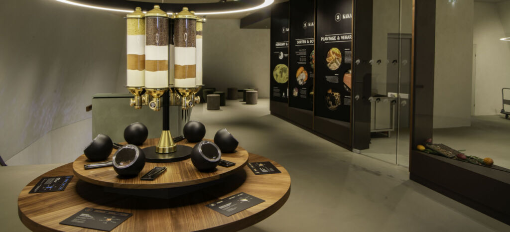 Die Besucher betreten dabei ein Reich der Sinne, wo die Luft erfüllt ist vom betörenden Duft gerösteter Kakaobohnen und geschmolzener Schokolade. Auf 300 Quadratmetern begeben sich die Gäste auf eine genussvolle Reise durch die Geschichte und die Kunst der Schokoladenherstellung: Vom Rösten der Kakaobohnen bis zur fertigen Schokoladentafel kann man nun jeden Schritt des Prozesses verfolgen und dabei verlockende Sinneseindrücke und die beeindruckenden Handgriffe der Chocolatiers hautnah erleben.