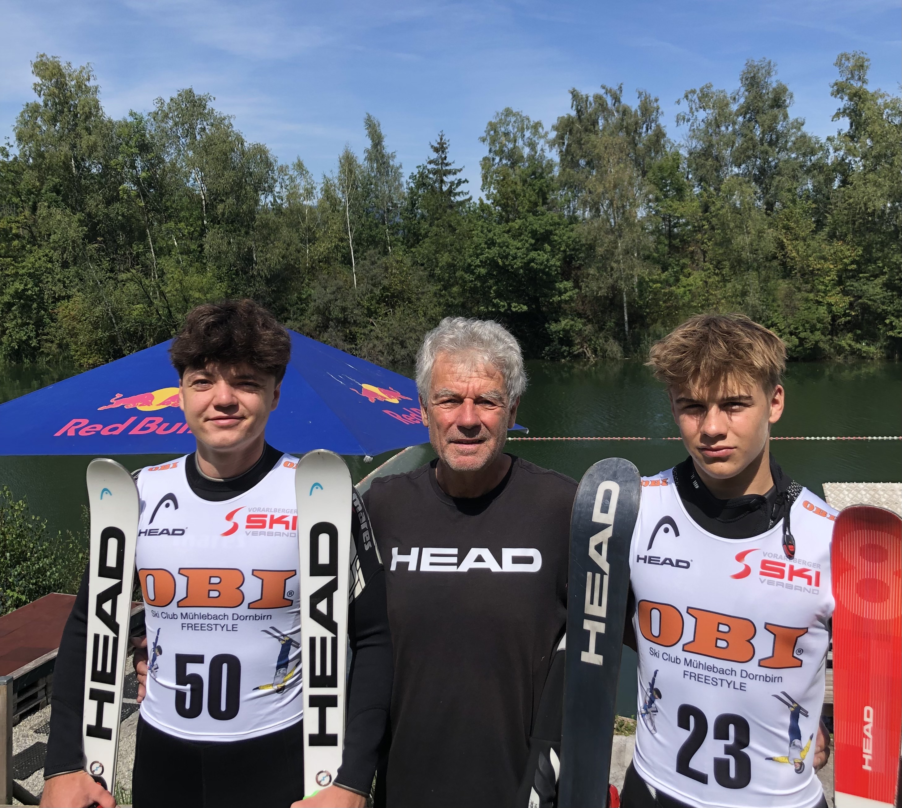 Dementsprechend war auch das Niveau der akrobatischen Sprünge auf den Wasserschanzen in den Rheinauen jenen in den Europacups im Winter ebenbürtig. Doppelsalti vorwärts und rückwärts von den Jüngsten bis zur Meisterklasse standen auf der Tagesordnung. Die Dominanz der Schweizer Nachbarn in dieser olympischen Disziplin war aber deutlich zu erkennen. Bereits seit über 20 Jahren professionelle Strukturen in der Schweiz haben sich bezahlt gemacht und damit stellen sie nicht nur den regierenden Weltmeister, sondern werden auch bei den olympischen Winterspielen im nächsten Jahr schwer zu schlagen sein. Umso erfreulicher, dass die Vorarlberger Mannschaft trotz bescheidener Möglichkeiten mit den Leistungen mithalten konnte. So konnten sich gleich drei Wettkämpfer vom SC Mühlebach Dornbirn für das Finale der besten Acht qualifizieren! Auf dem vierten Platz konnte sich Michael Krojer mit einem Doppelsalto vorwärts und Streckphase zwischen dem ersten und zweiten Salto direkt hinter den besten Schweizern positionieren. Dazu konnte sich Marius Simma auf dem siebten Platz und Felix Schwendinger auf dem achten Platz ebenfalls für das Finale qualifizieren. Im Finale hatte Michael Krojer jedoch Pech, weil er den Sprung abbrechen musste und schlussendlich nur den achten Platz erreichen konnte. Felix Schwendinger wurde Sechster und Marius Simma Siebter. Marius, der erst seit dem Frühjahr im Vorarlberger Freestyle- und Freeski-Team ist, gehört allerdings durch seine ausgezeichneten Ergebnisse bei den Sommerwettkämpfen zu den großen Hoffnungen für die nächsten Jahre. Durch das Missgeschick von Michael war der Weg frei für den Tschechen Simon Kroupa, der sich mit einem Doppelsalto rückwärts mit einer Schraube auf den dritten Platz vorschieben konnte. Zweiter wurde der Schweizer Neville Erb. Sein Mannschaftskollege Andrin Laber hatte als Einziger einen Doppelsalto mit zwei Schrauben im Programm und sicherte sich den Sieg.