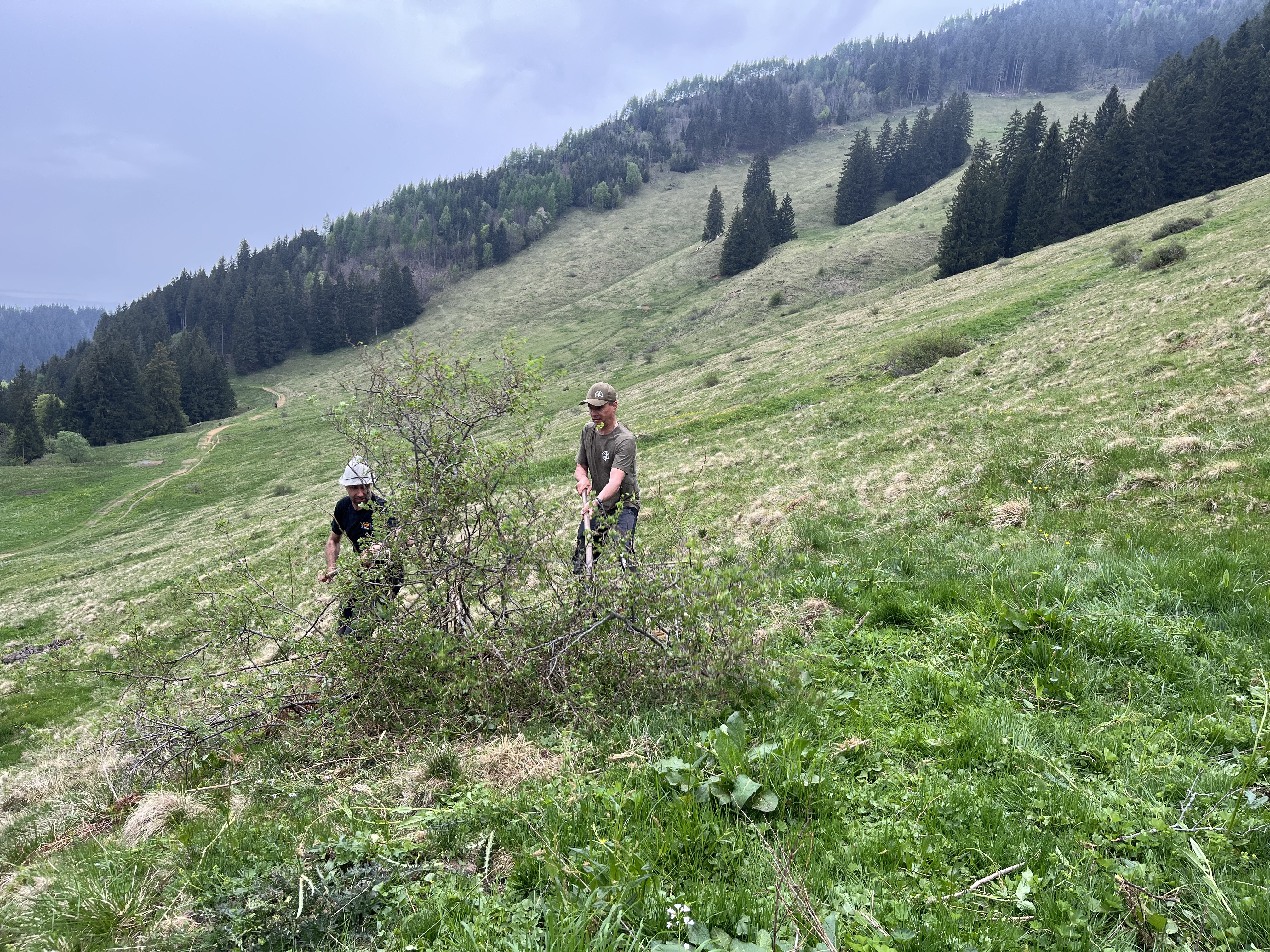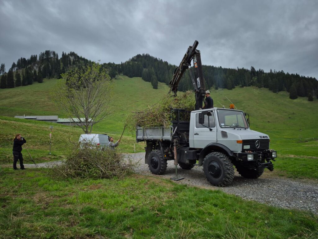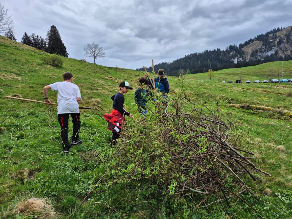 Am 3. Mai 2025 folgten 93 engagierte Helfer dem Aufruf der Agrargemeinschaft Emser Alpen zum gemeinsamen Schwendtag.