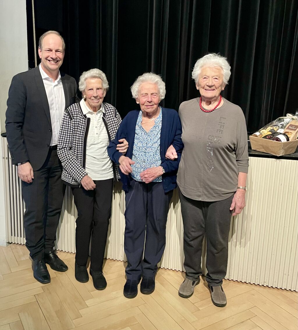 Ein besonderer Moment des Nachmittages war die Ehrung der ältesten Ballbesucher: Lydia Häfele, die heuer ihren 100. Geburtstag feiert, Anni Drexel (Jg. 1928) und Antonia Sandholzer (Jg. 1931) bekamen einen Geschenkskorb vom Stadtoberhaupt überreicht.