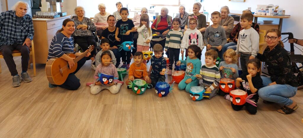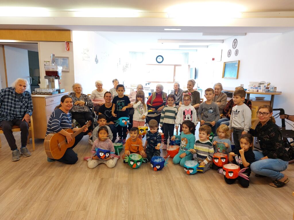 Die Lage unseres Kindergartens innerhalb des Seniorenheims Senecura bietet eine Reihe von Möglichkeiten der Begegnung mit den Bewohnern und Mitarbeitern. So haben wir im letzten Jahr die Senioren mehrmals besucht und ihnen unsere gelernten Lieder vorgesungen, eine Vorstellung für sie gemacht oder ein Geschenk für sie vorbereitet.