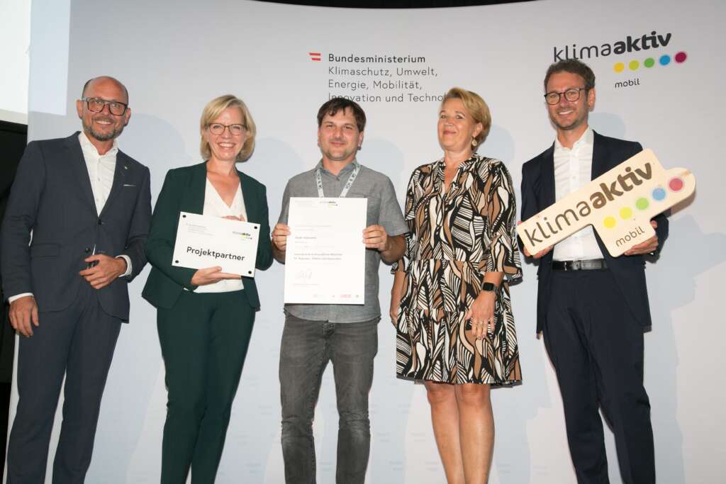 An 31 der insgesamt rund 100 Prämierten überreichte Klimaschutzministerin Leonore Gewessler die Urkunden persönlich, gemeinsam mit Daniel Zadra (Mobilitätslandesrat), Bgm. Andrea Kaufmann (Österreichischer Gemeindebund) und Bgm. Michael Ritsch (Österreichischer Städtebund).