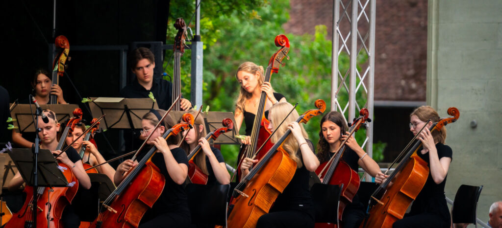Mit frischem Schwung und voller Spielfreude eröffnet das Jugendsinfonieorchester der tonart Musikschule auch heuer wieder traditionell die Hohenemser Sommernachtskonzerte.