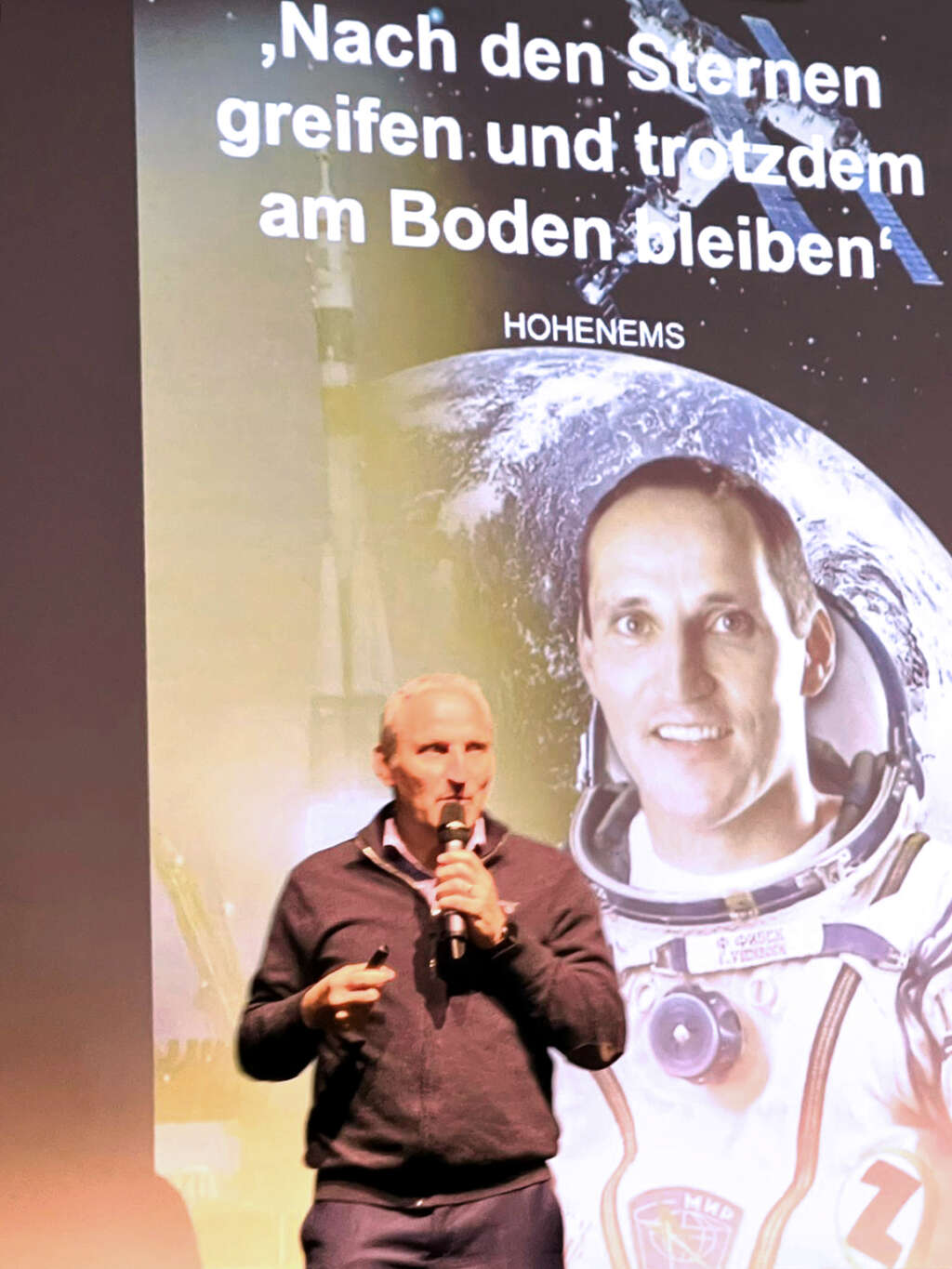 Der Marketing Club Vorarlberg lud am Mittwoch, dem 29. September 2021, zum „Lunch with the Austrian Kosmonaut“ in die Otten Gravour, wo Viehböck über die eindrückliche Reise und die abenteuerliche Vorbereitung erzählte. Seinen Ausführungen wohnte auch eine große Anzahl von Hohenemsern, darunter Bürgermeister Dieter Egger und zahlreiche Mitglieder des Stadtrats, bei.