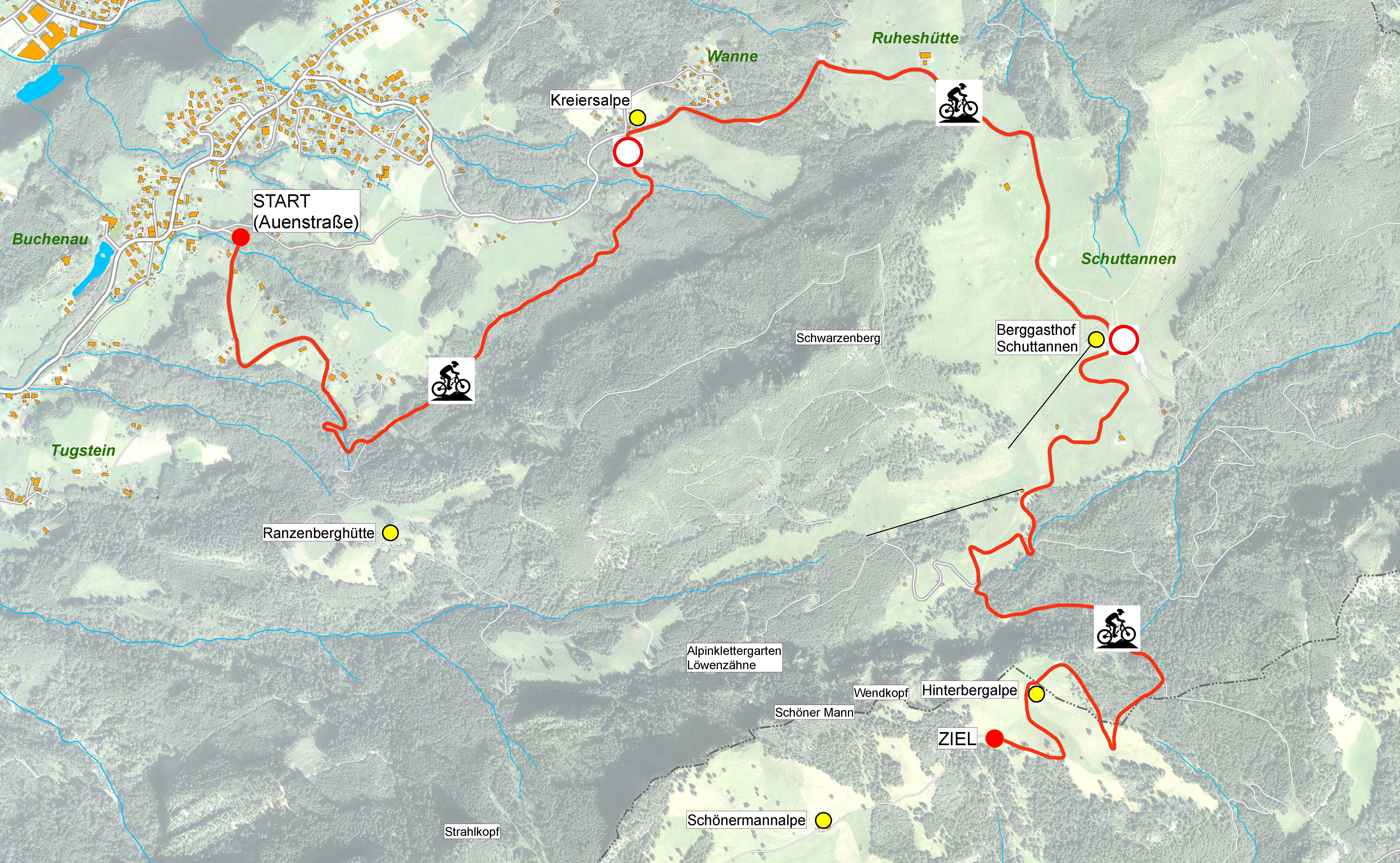 Die Strecke führt auf einer Länge von 7,6 Kilometern mit 700 Höhenmetern von Emsreute über den Weißtannenweg zur Schuttannenstraße und dann weiter bis zum Ziel oberhalb der Hinterbergalpe – ein echtes Highlight für alle Radsportbegeisterten.