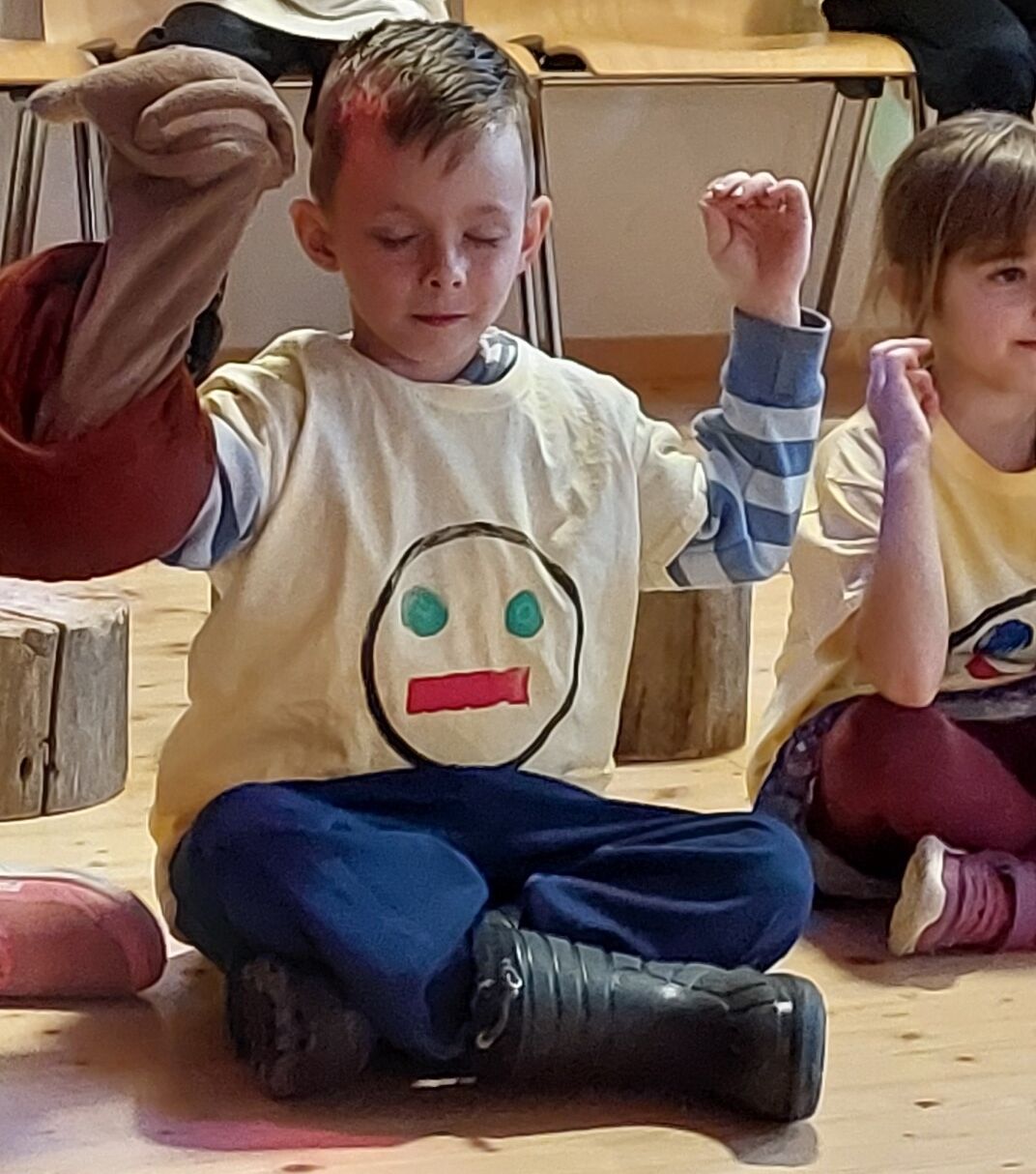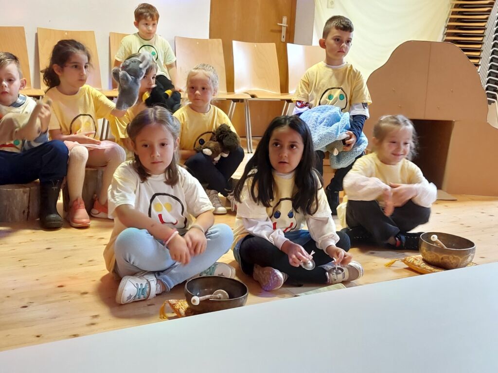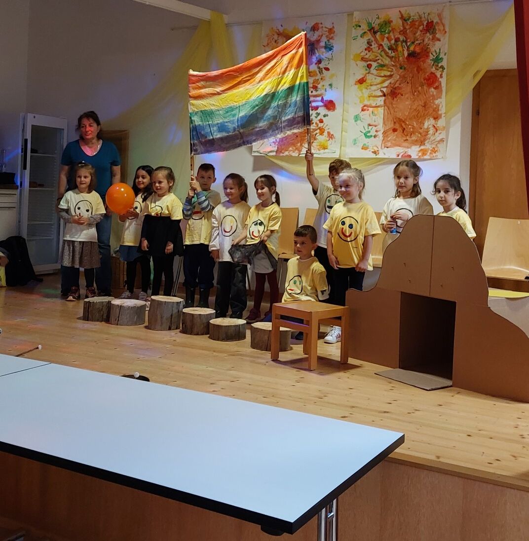 Im Saal des Arbeitervereinsheims führten die Kinder ein Musiktheaterstück, frei nach dem Bilderbuch des „Kleinen Siebenschläfers“, auf. Eingeladen waren Eltern, Großeltern, Geschwister und Freunde. Mit Hilfe von Handpuppen schlüpften die Kinder in ihre Rolle und brachten das Publikum zum Staunen.