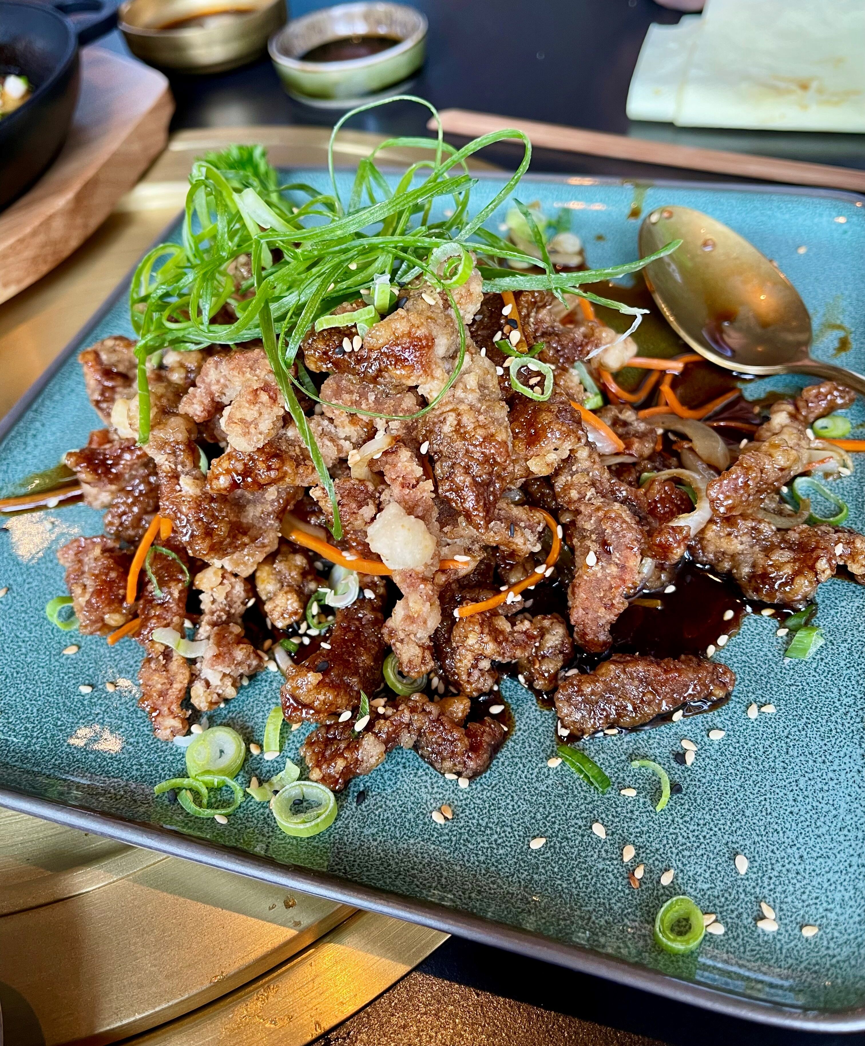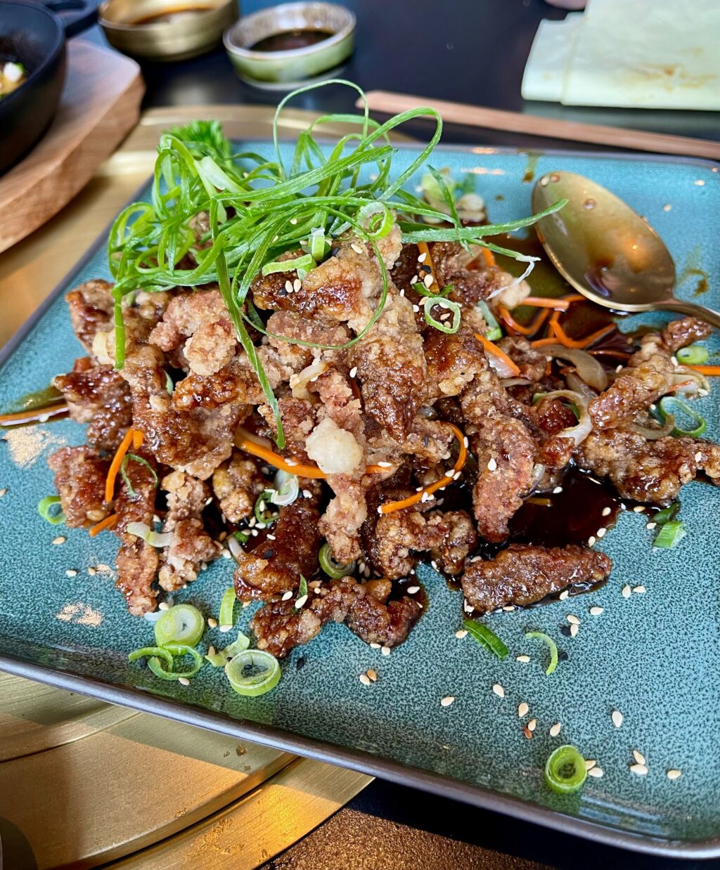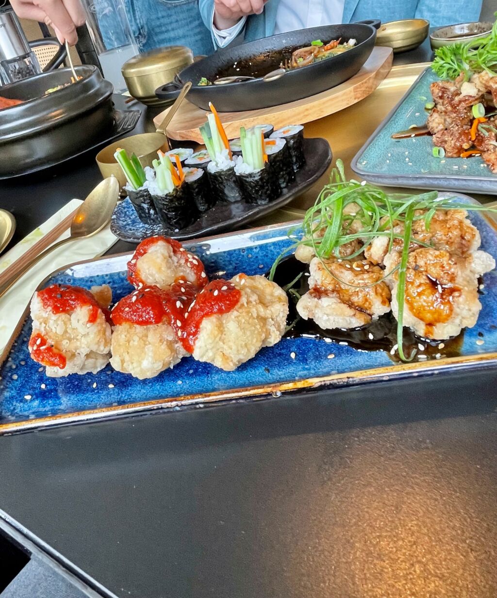 Unser koreanisches Fried Chicken wird nach dem Rezept eines erfahrenen koreanischen Kochs zubereitet. Eine unserer besonderen Saucen wird aus frischen Früchten wie Äpfeln hergestellt – das verleiht dem Gericht eine perfekte Balance aus Knusprigkeit und Frische. Außerdem bieten wir unseren beliebten Bulgogi-Feuertopf, ein vielfältiges BBQ-Menü sowie verschiedene köstliche koreanische Vorspeisen und Snacks an, die bei unseren Gästen ebenfalls sehr beliebt sind.