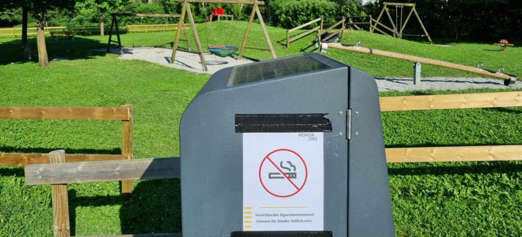 Die Stadt Hohenems setzt sich aktiv für die Gesundheit und Sicherheit unserer Kinder ein. Auf allen Spielplätzen in Hohenems gilt ein striktes Rauchverbot. Unsere kleinsten Mitbürger sollen vor den Gefahren durch Zigarettenstummel geschützt werden – denn diese können beim Verschlucken potenziell tödlich sein!
