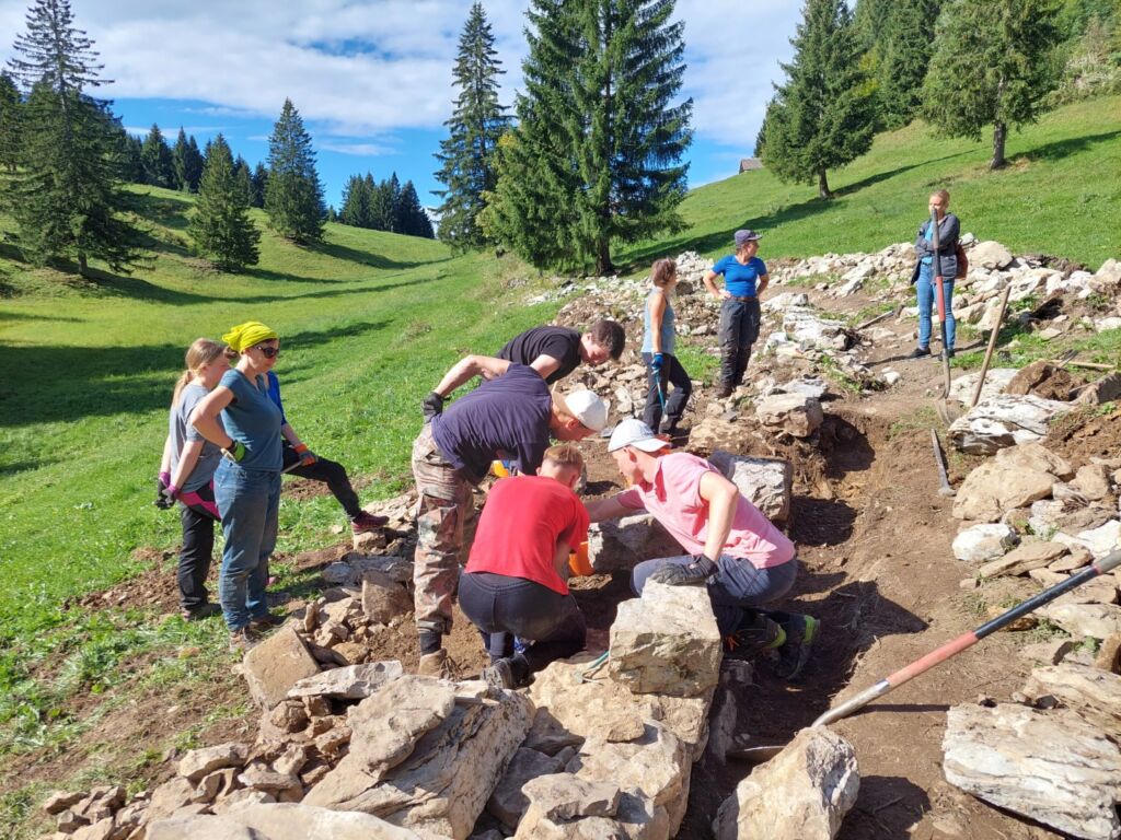 Ziel war es, aus den noch vorhandenen Fragmenten und herumliegenden Steinen den Abschnitt zwischen dem Wegkreuz und der Emser Hütte wiederherzustellen.