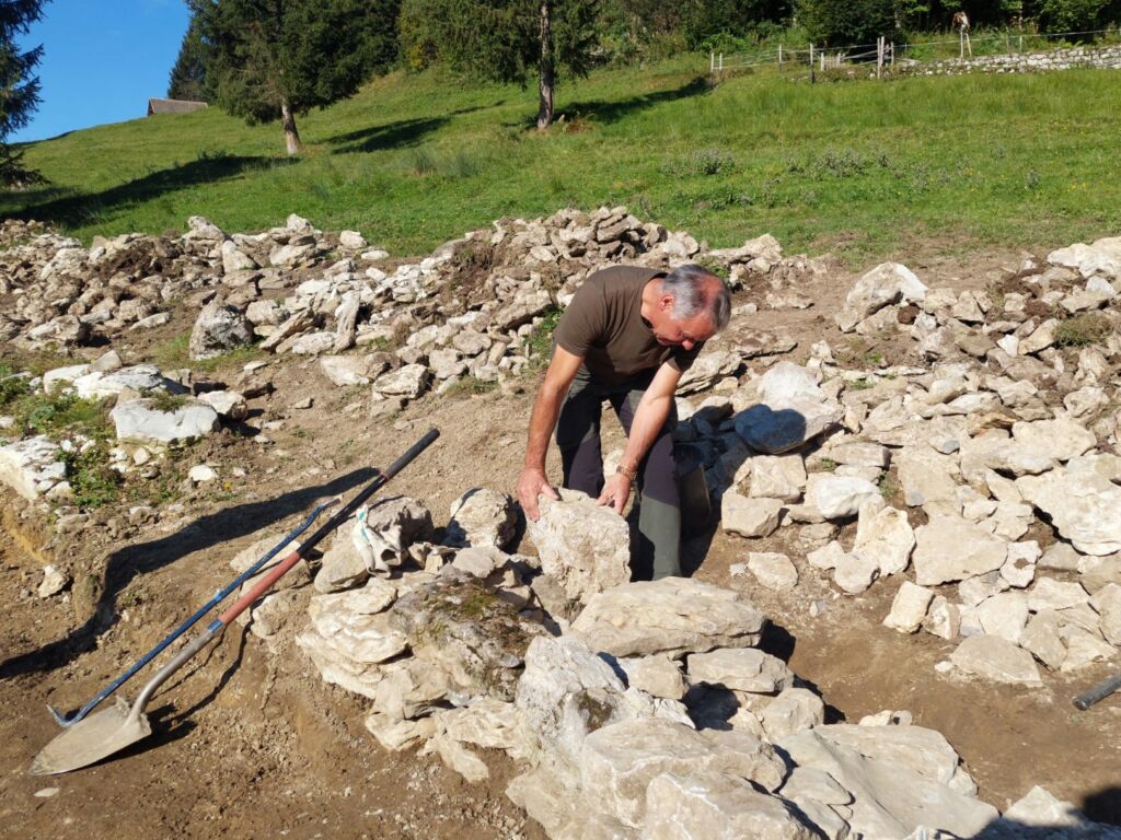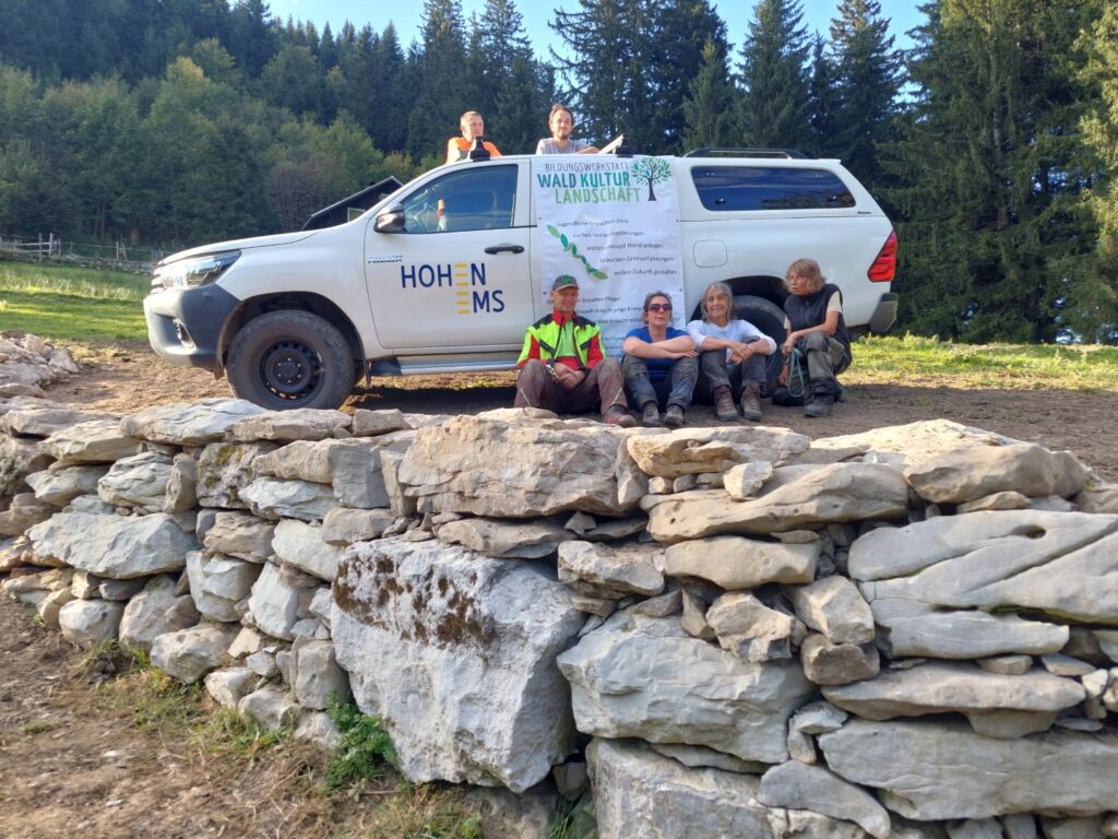 Vergangene Woche waren sieben erwachsene Personen aus Deutschland, der Schweiz und Österreich, welche im Team für die „Bildungswerkstatt WALD“ tätig sind, im Rahmen eines gegenseitigen Austausches vor Ort und erweiterten die Trockensteinmauer um einen wesentlichen Abschnitt.