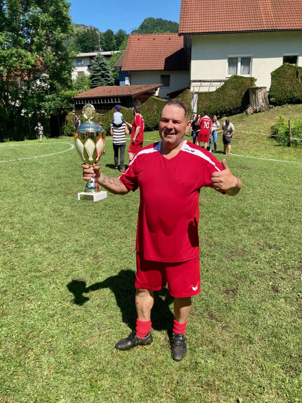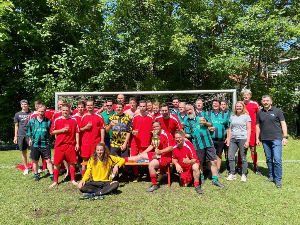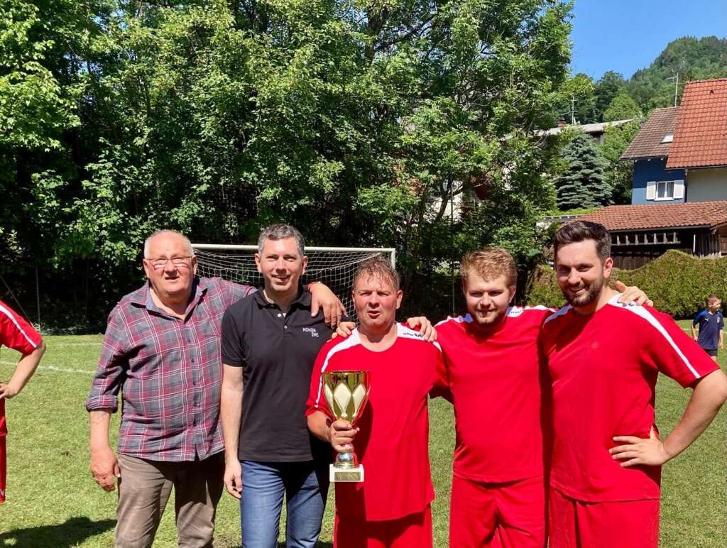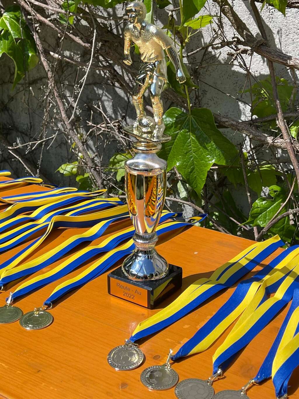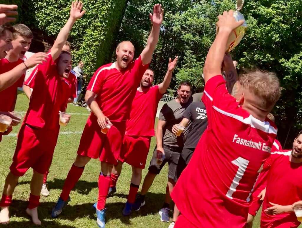 Am Nachmittag folgte dann das Highlight des Tages. Im Spiel der Erwachsenen war zu erkennen, dass trotz allen Ehrgeizes auch der Spaß nicht zu kurz kommen darf. Mit einem knappen 1:0-Vorsprung für die Rütner ging es in die Halbzeit. Im zweiten Abschnitt erhöhten die Hausherren früh auf 2:0. Die Auner versuchten noch einmal alles, um den Ausgleich zu erzielen, fanden aber meist in der an diesem Tag starken Verteidigung der Rütner ihre Meister. So waren es die Hausherren, denen noch die entscheidenden Treffer zum 4:1-Endstand gelangen. Nach einigen Jahren, in denen das Spiel nicht stattfinden konnte, war der Jubel der Zuschauer im Glopperstadion über diesen Heimerfolg umso größer. Der Wanderpokal, überreicht von Sportstadtrat Markus Klien, bleibt nun bis zum nächsten Jahr in der Reute. Im Festzelt und an der Bar wurde noch bis in die Nacht bei bester Stimmung gemeinsam gefeiert, bestens verpflegt vom Wirtschaftsteam der Fasnatzunft Emsreute.