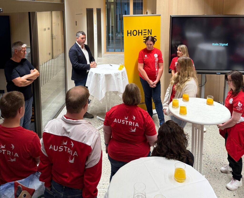 Am Montag, dem 22. September 2025, herrschte festliche Stimmung im Rathaus: LAbg. Vizebürgermeister Markus Klien begrüßte mit großer Freude die talentierten Tänzer des Tanzhauses Hohenems – einer inklusiven Tanzgruppe, die kürzlich beim „World Gym for Life Challenge“ in Lissabon die Silbermedaille gewinnen konnte.