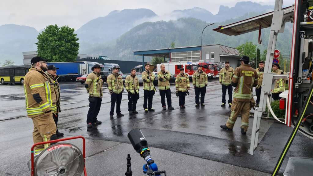Bedanken möchte sich die Feuerwehr Hohenems zudem insbesondere bei der Firma Collini und bei Yvonne, Friedl und Marc Dold von der Firma Marinelli Transporte für die Bereitstellung des Übungsgeländes.