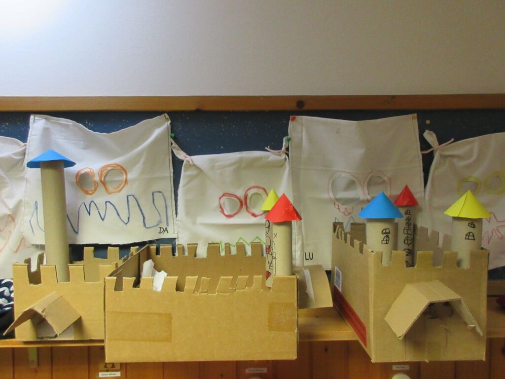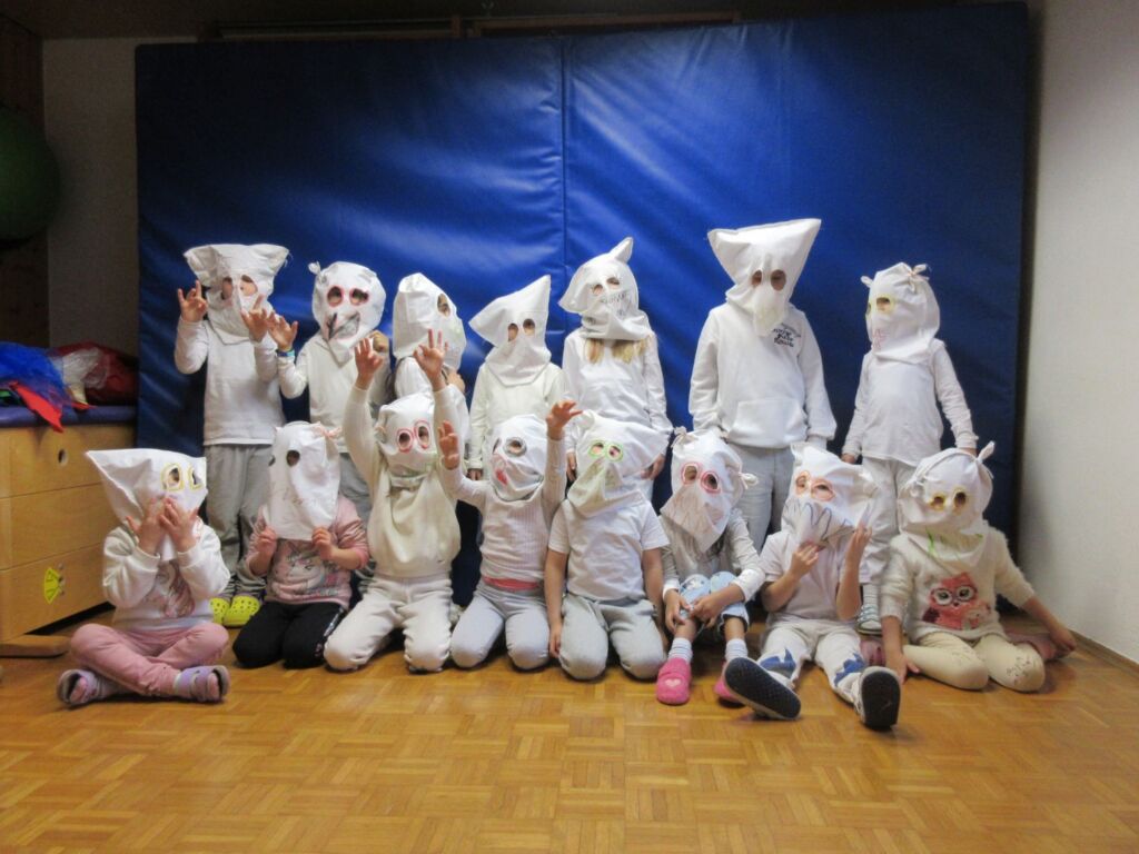 In den vergangenen Wochen wurden den Kindern Gespenstergeschichten vorgelesen und erzählt. Die Kinder haben schaurige Geisterlieder gelernt und Rasseln zur Musikbegleitung hergestellt. Sie haben Schachtelburgen samt Burggespenst und Schlaftruhe gebastelt und gruselige Geisterkapuzen zum Verkleiden gestaltet.