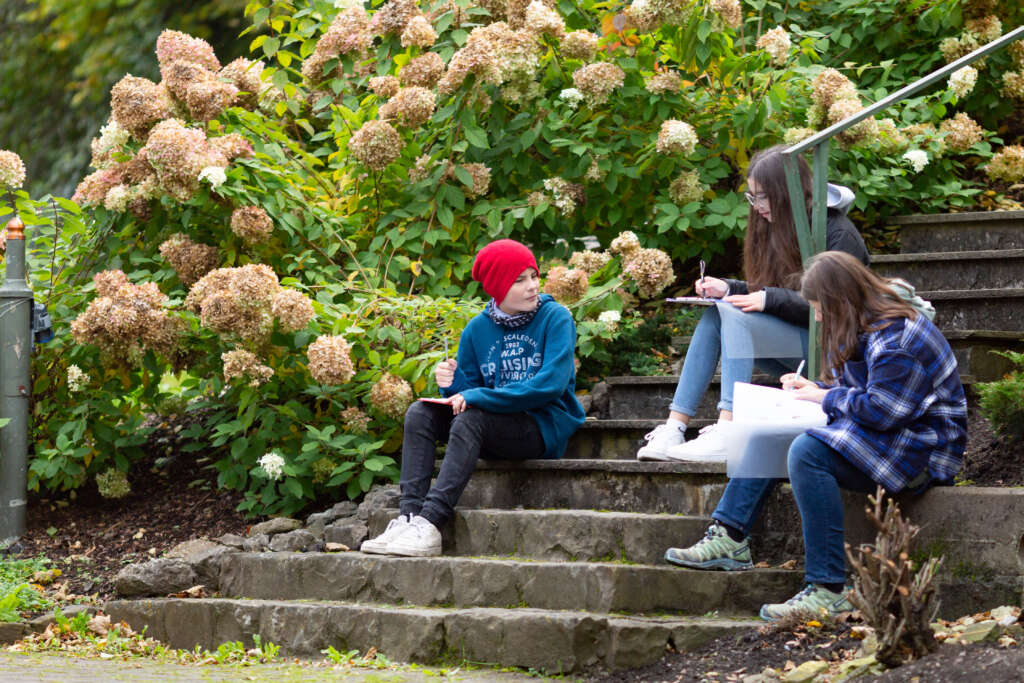 Auf Einladung des Literaturhauses Vorarlberg suchten die Schüler der jetzigen 4b- Klasse im Rahmen des Projektes Stadtflüstern gemeinsam mit den Autoren Ruth Schmiedberger und Amos Postner ihre Lieblingsplätze in Hohenems auf. Von den Orten inspiriert und von den Autoren begleitet, gingen die Jugendlichen direkt unter freiem Himmel in einen kreativen Schreibprozess.