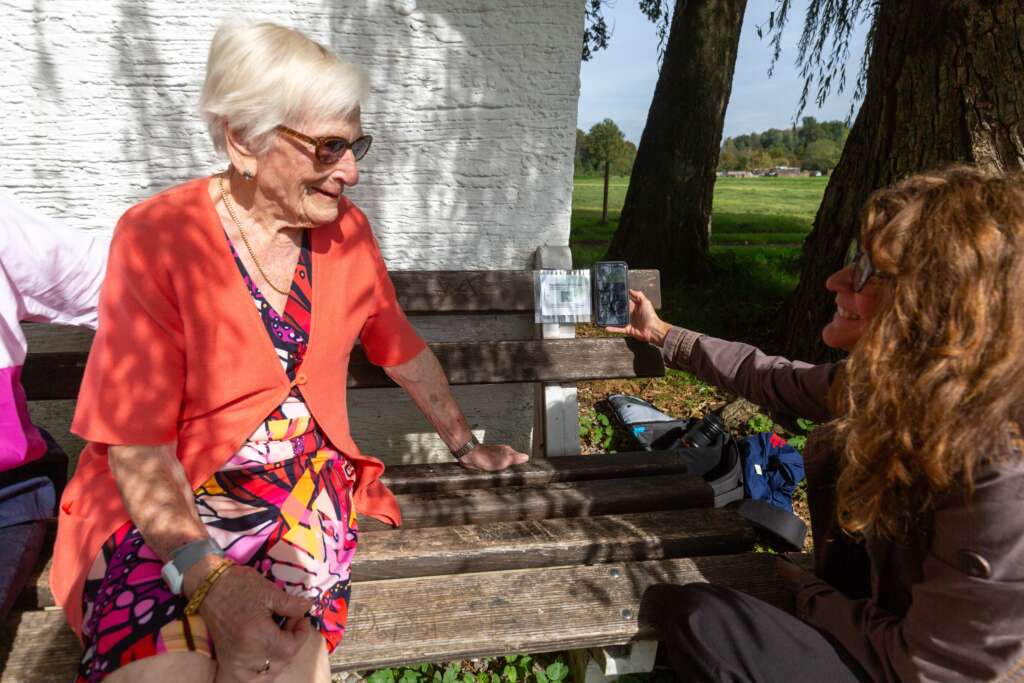 Fina Fenkart blickt schließlich gemeinsam mit ihrer langjährigen Freundin Maria Inama auf alte Zeiten zurück, in denen ihre Buben heimlich zum Schwimmen im Weiher auf dem Schwefelberg entwischt sind.