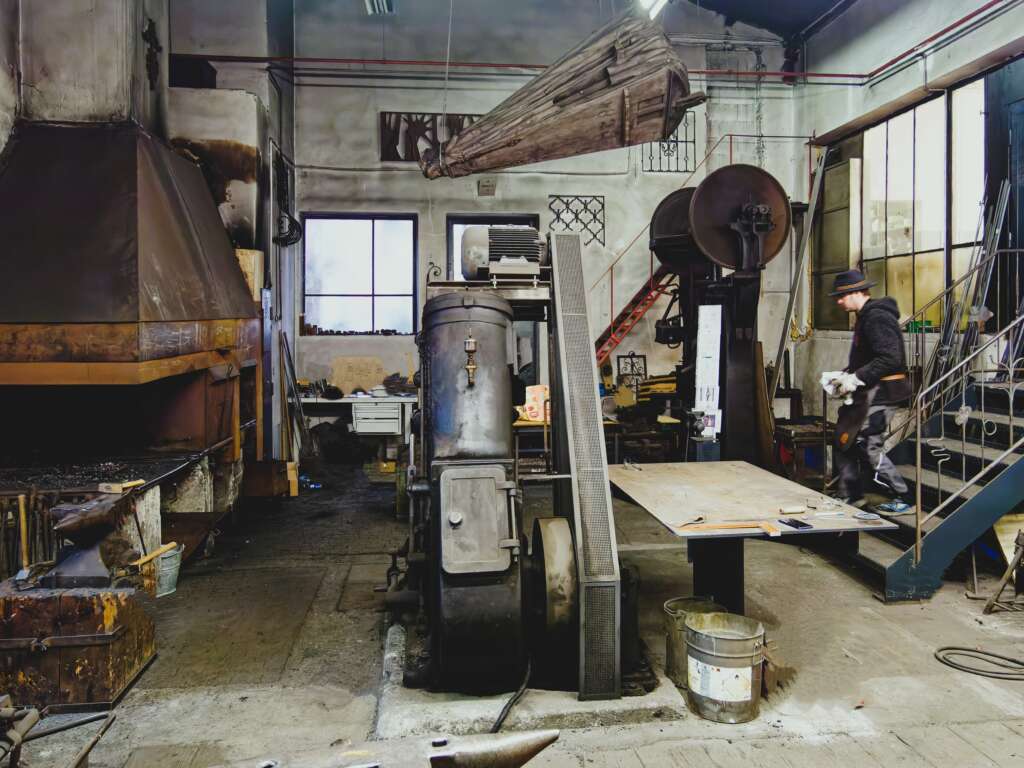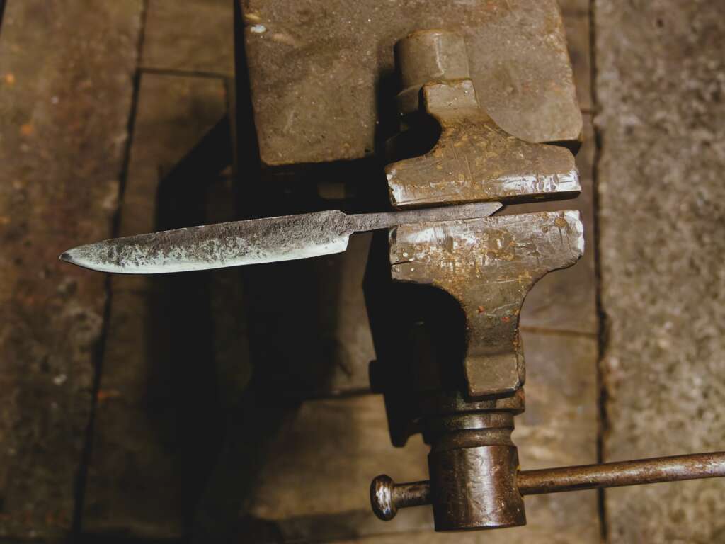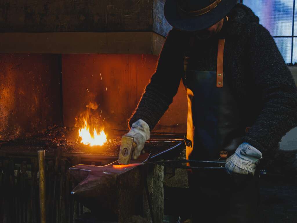 Das rustikale Ladenlokal bietet handgeschmiedete Messer, personalisierte Geschenke für Männer, restaurierte Werkzeuge und veranstaltet zahlreiche spannende Kurse.