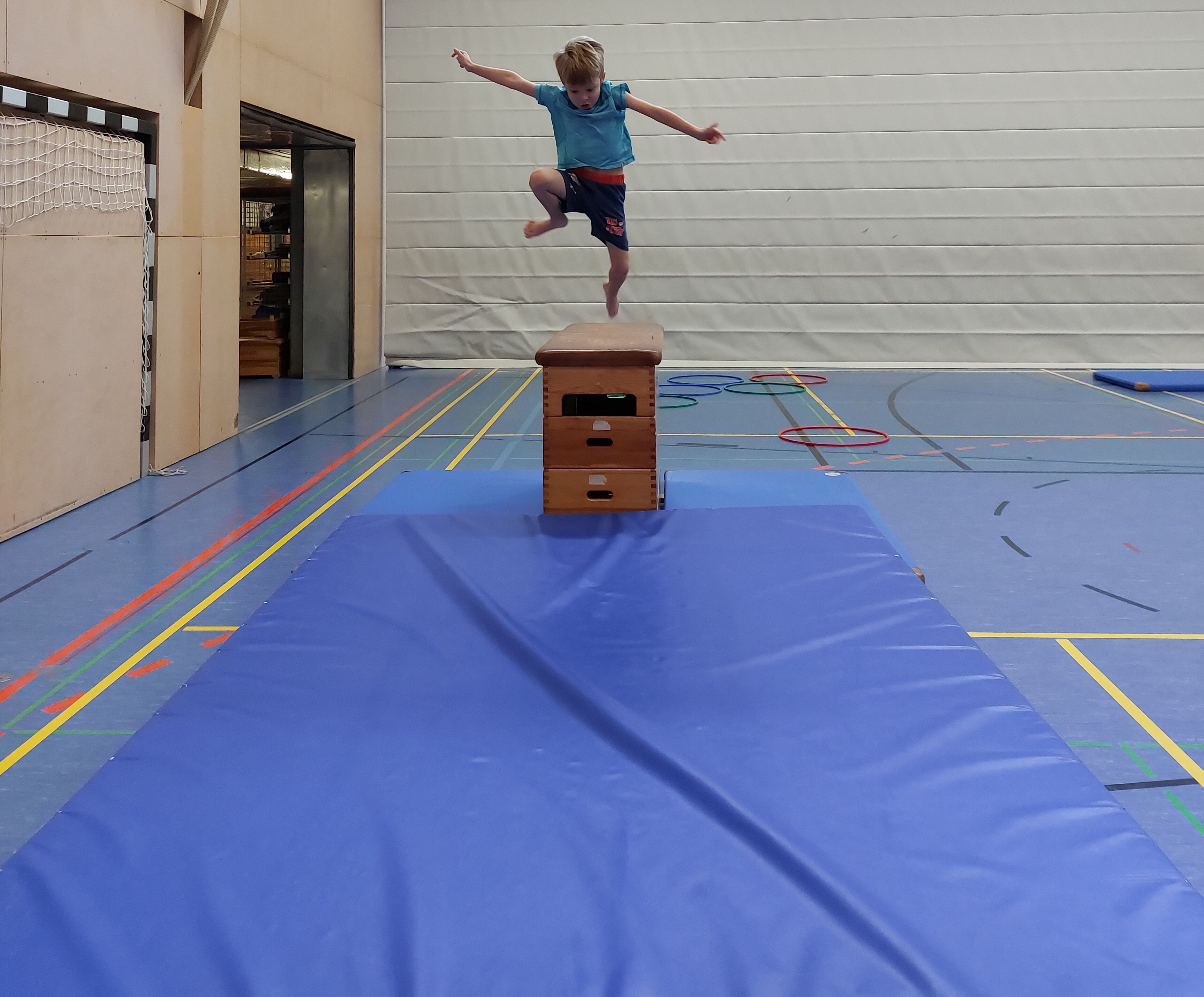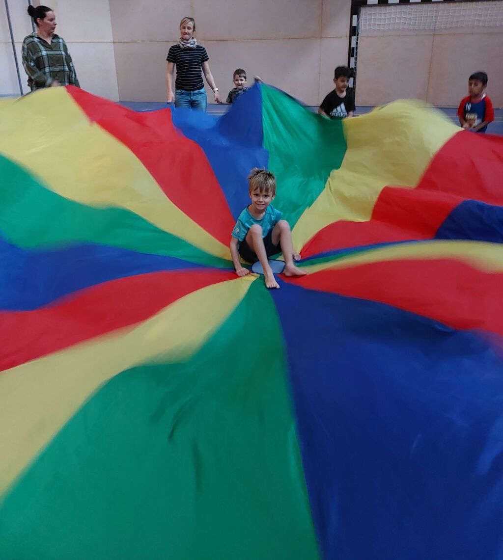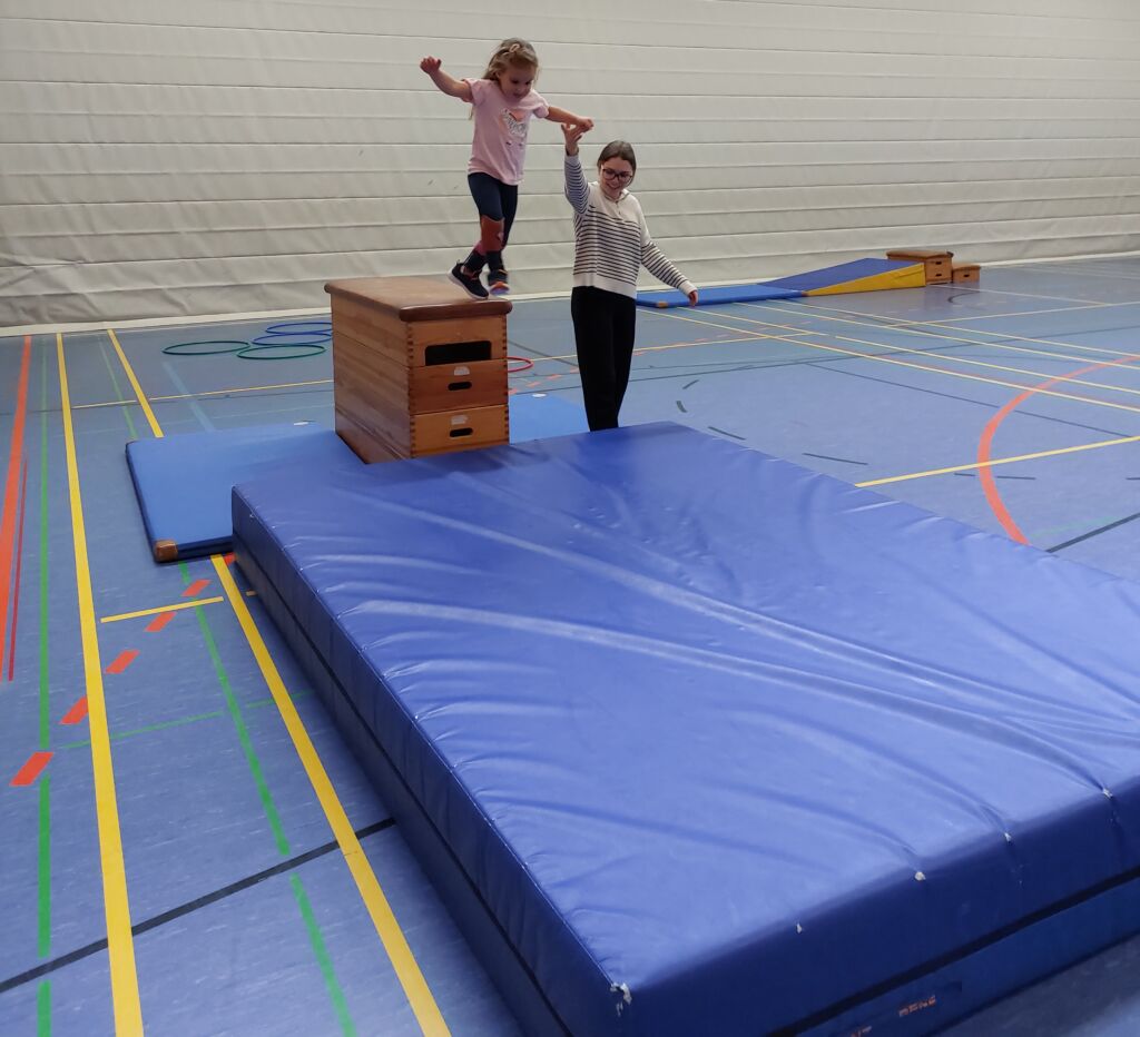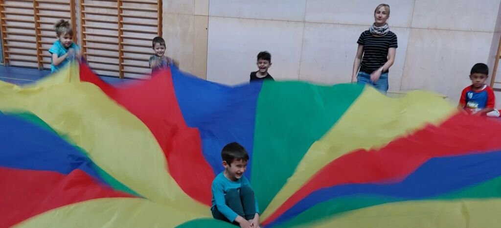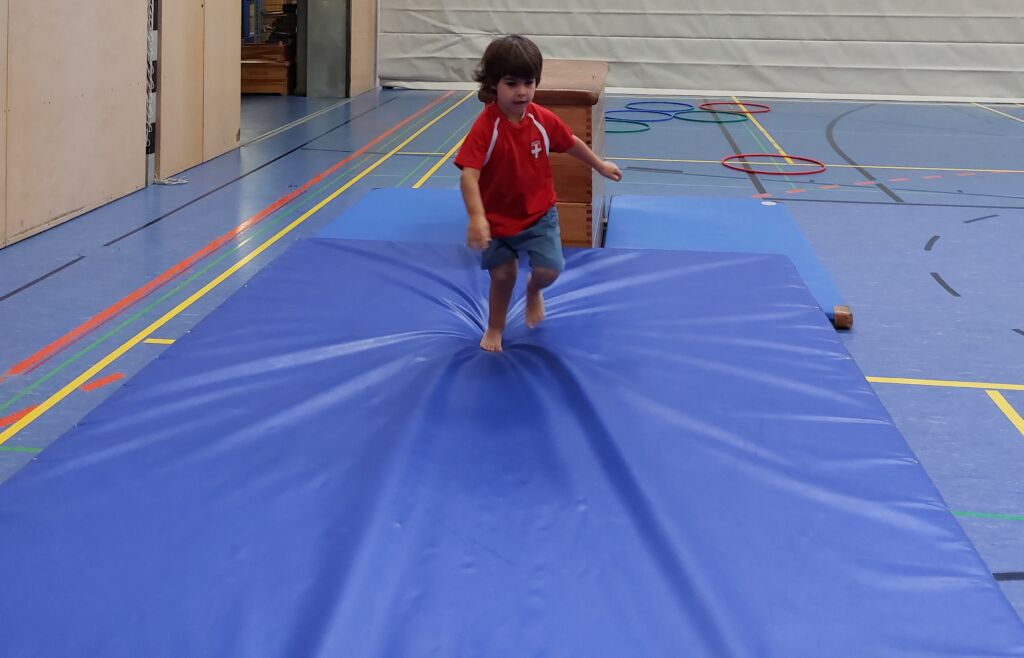 Jeden Montag starten wir sportlich in die Woche. Die Hühnergruppe darf dafür immer die Turnhalle der Sportmittelschule für zwei Stunden ausnutzen. So wird jeder Turntag unvergesslich und stets unterschiedlich.
