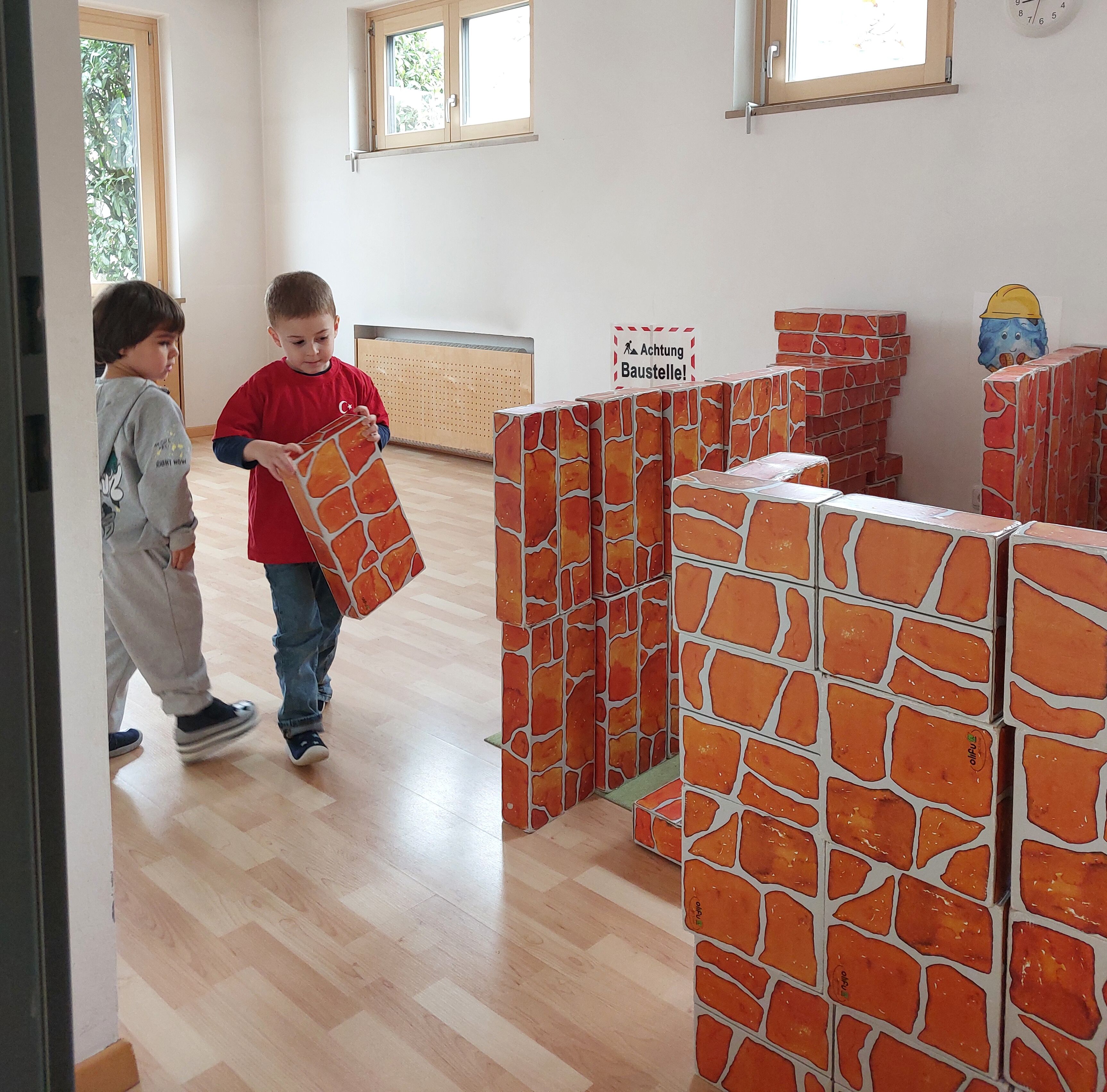 Unsere Bauecke verwandelte sich über Nacht in eine riesige Wuselbaustelle.