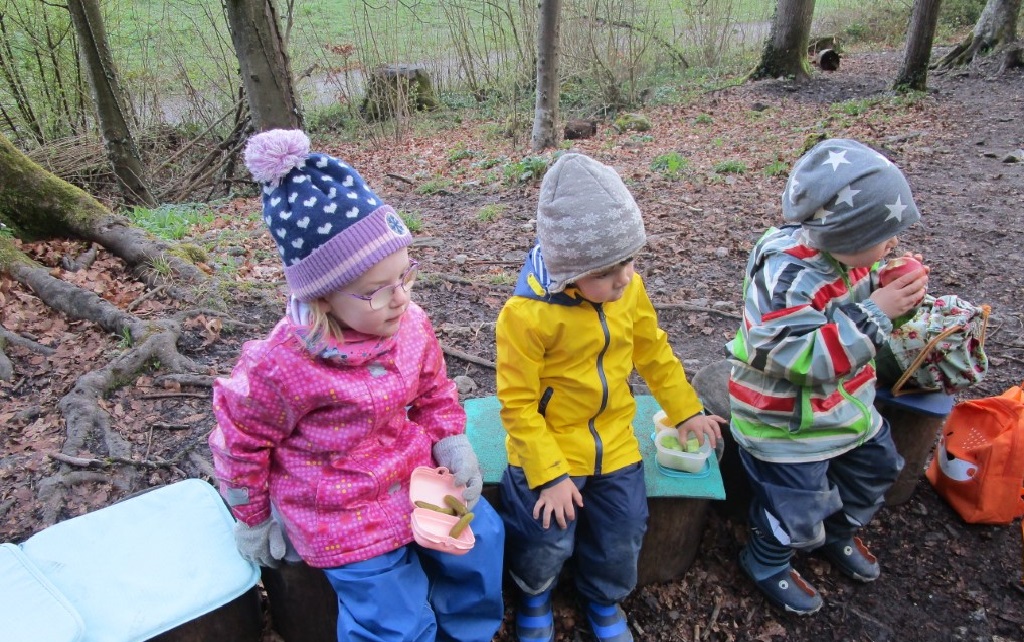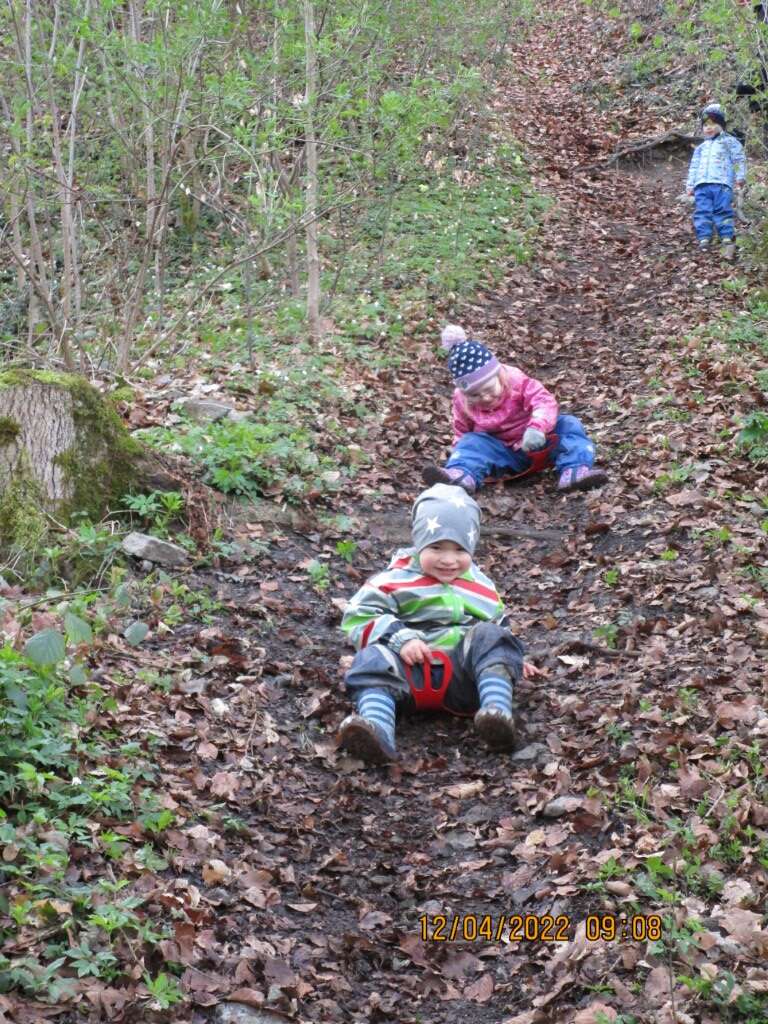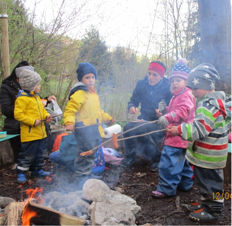Bereits die Busfahrt war für alle ein aufregendes Erlebnis. Am Waldplatz angekommen, machten wir gleich ein Feuer, um uns etwas zu wärmen. Als alle gut angekommen waren und wir uns mit dem Waldplatz vertraut gemacht hatten, machten wir uns gleich auf den Weg, um den umliegenden Wald zu erforschen. Sogar eine Schaukel gab es, mit der man sich zwischen den Bäumen hin und her schwingen konnte. Mit Schneerutscher rutschten wir einen Hügel hinab und bauten eine Hütte aus Ästen. Bald schon bekamen alle großen Hunger und packten ihre Jause aus. Außerdem durften alle Würstchen und Stockbrot über dem Feuer grillen – Das war lecker! Gestärkt ging dann das Spiel im Wald noch weiter, bis es Zeit war, unsere Sachen zu packen, das Feuer auszumachen und gemeinsam wieder nach Hause zu gehen. Wir hatten einen aufregenden Vormittag und freuen uns auf das nächste Mal!