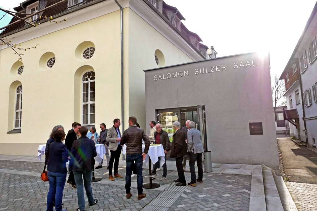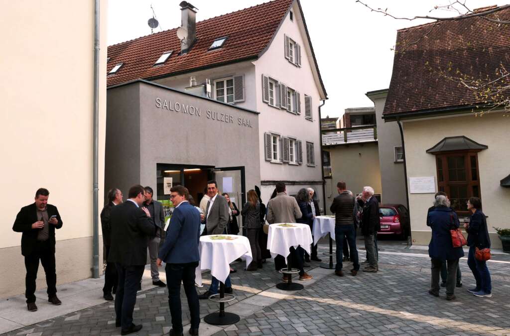 Bereits gestern Abend trafen sich alle am Projekt mitarbeitenden Beteiligten bereits zu einer Einführung im Salomon-Sulzer-Saal, und nahmen das wunderschöne Ergebnis ihrer grenzübergreifenden, gemeinsamen Arbeit in Augenschein.