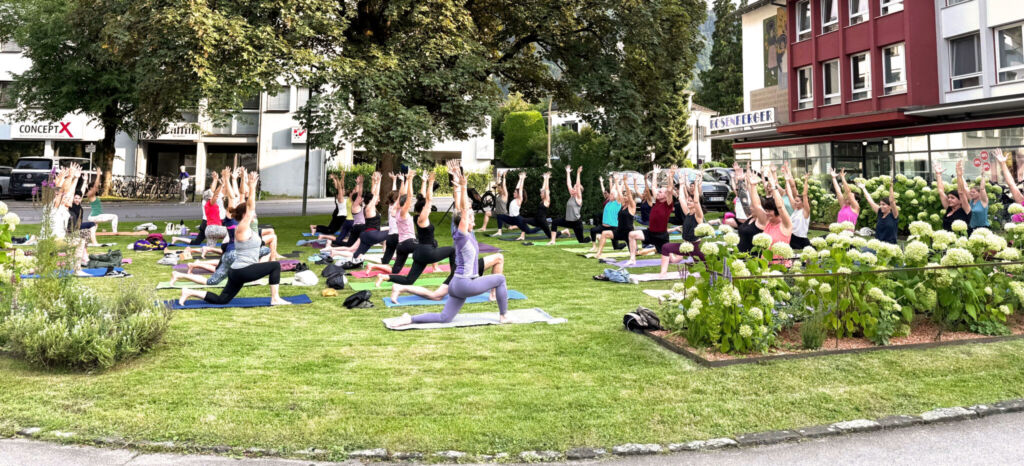 Das allseits beliebte und bereits traditionelle Schlossplatz-Yoga findet regelmäßig im Sommer auf der Wiese vor „Rosenberger Schuhe“ statt, das letzte Mal für heuer am Mittwoch, dem 3. September 2025, von 18.15 bis 19.15 Uhr.