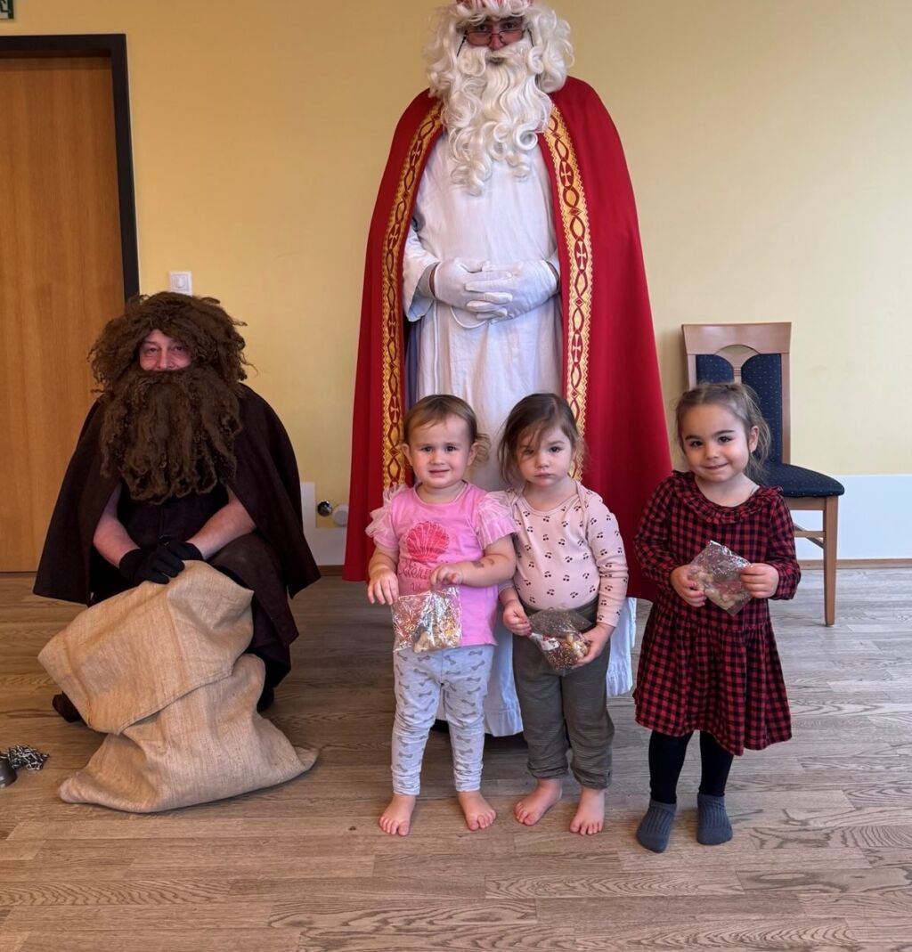 Ein weiteres Highlight fand am 5. Dezember statt: Der Nikolaus besuchte die Kinder – begleitet von seinem treuen Helfer Knecht Ruprecht. Schon in den Tagen zuvor hatten die Kinder mit großer Freude und Begeisterung das Nikolauslied geübt, damit der heilige Mann sie schon von weitem hören und den Weg zu ihnen finden konnte. Und tatsächlich: Der Gesang der Kinder lockte den Nikolaus direkt in die Villa Sonnenschein.
