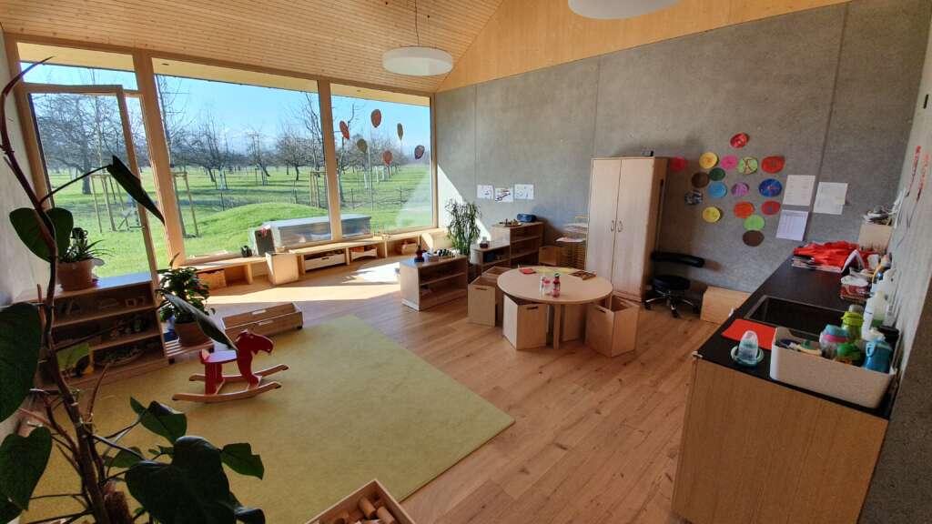 Unsere zwei barrierefreien Kleinkindgruppen liegen mitten in der Natur – umgeben von Wiesen, Feldern, dem Alten Rhein sowie Tieren wie Pferden und Kühen.